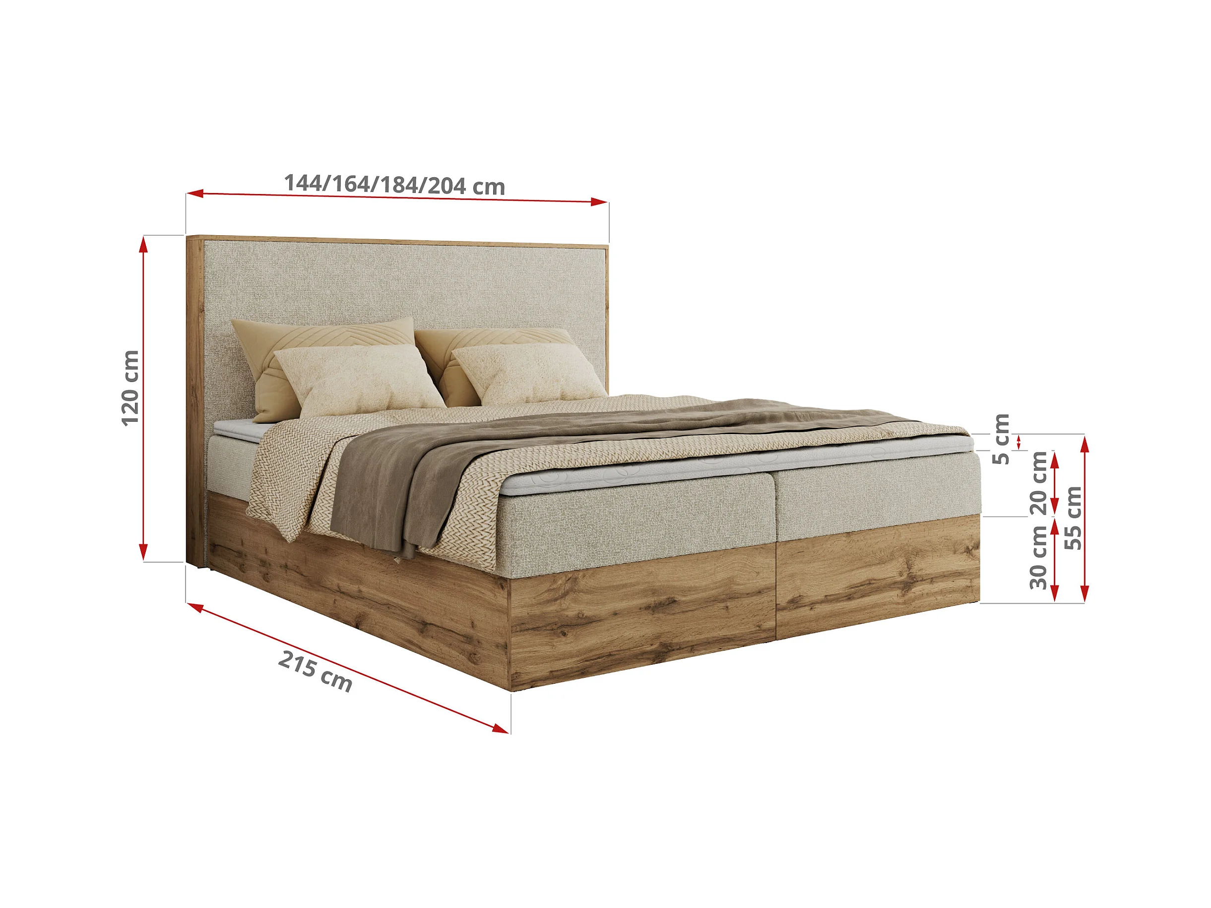 Boxspringbett WOOD CLASSIC - Doppelbett für Schlafzimmer, Set mit Multipocket-Matratze, Holzrahmen - 180x200 cm - H4 - Creme Strukture