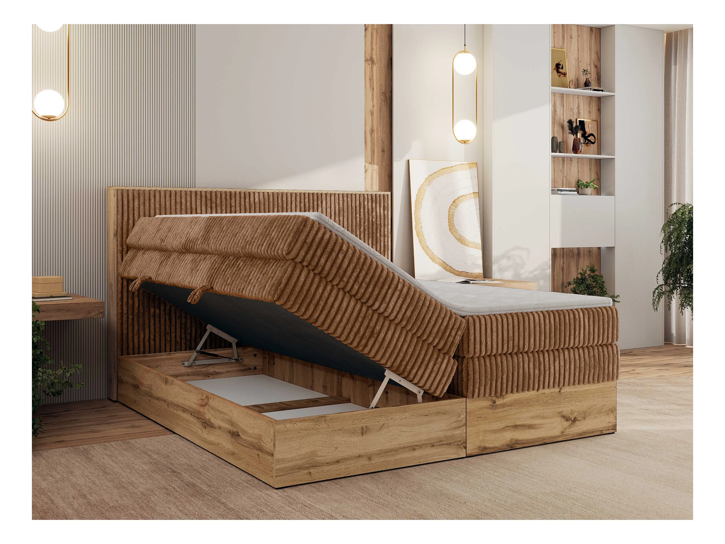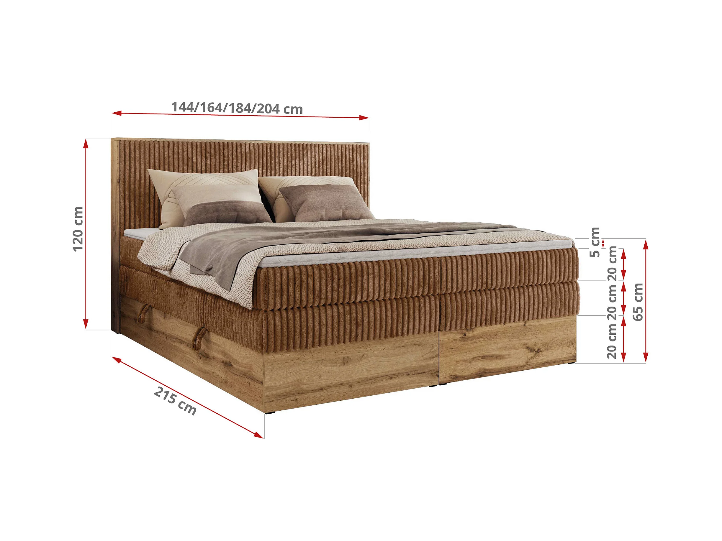 Boxspringbett WOOD CLASSIC KING - Polsterbett mit hohe Kopfteil, zwei Multipocket-Matratze, Bettkästen - 180x200 cm - H4 - Orange Cord