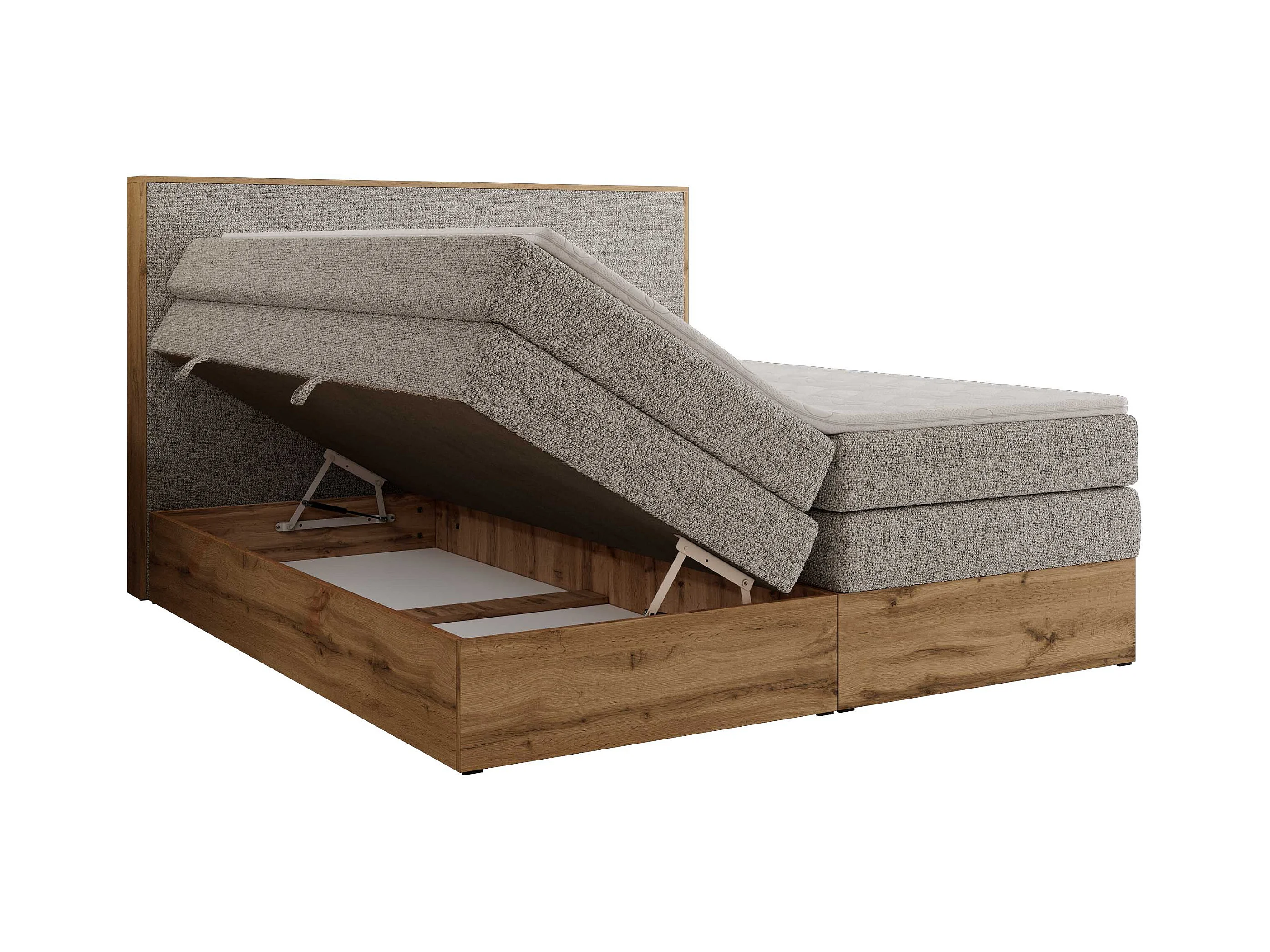 Boxspringbett WOOD CLASSIC KING - Polsterbett mit hohe Kopfteil, zwei Multipocket-Matratze, Bettkästen - 200x200 cm - H4 - Beige Strukture