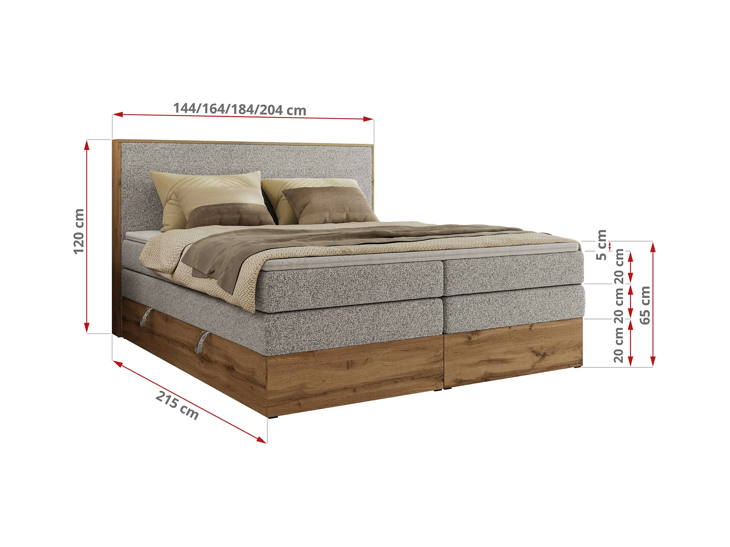 Boxspringbett WOOD CLASSIC KING - Polsterbett mit hohe Kopfteil, zwei Multipocket-Matratze, Bettkästen - 200x200 cm - H4 - Hellgrau Strukture