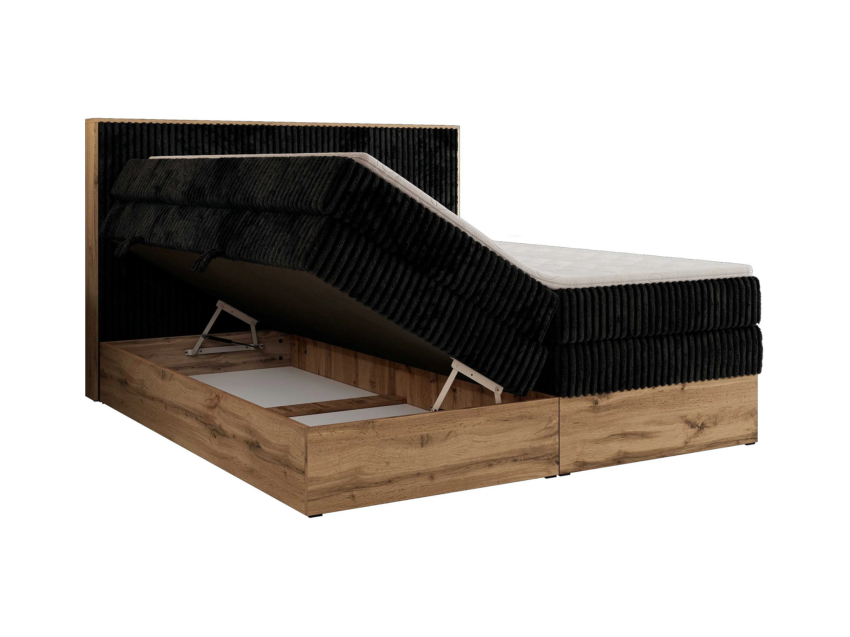 Boxspringbett WOOD CLASSIC KING - Polsterbett mit hohe Kopfteil, zwei Multipocket-Matratze, Bettkästen - 200x200 cm - H4 - Schwarz Cord