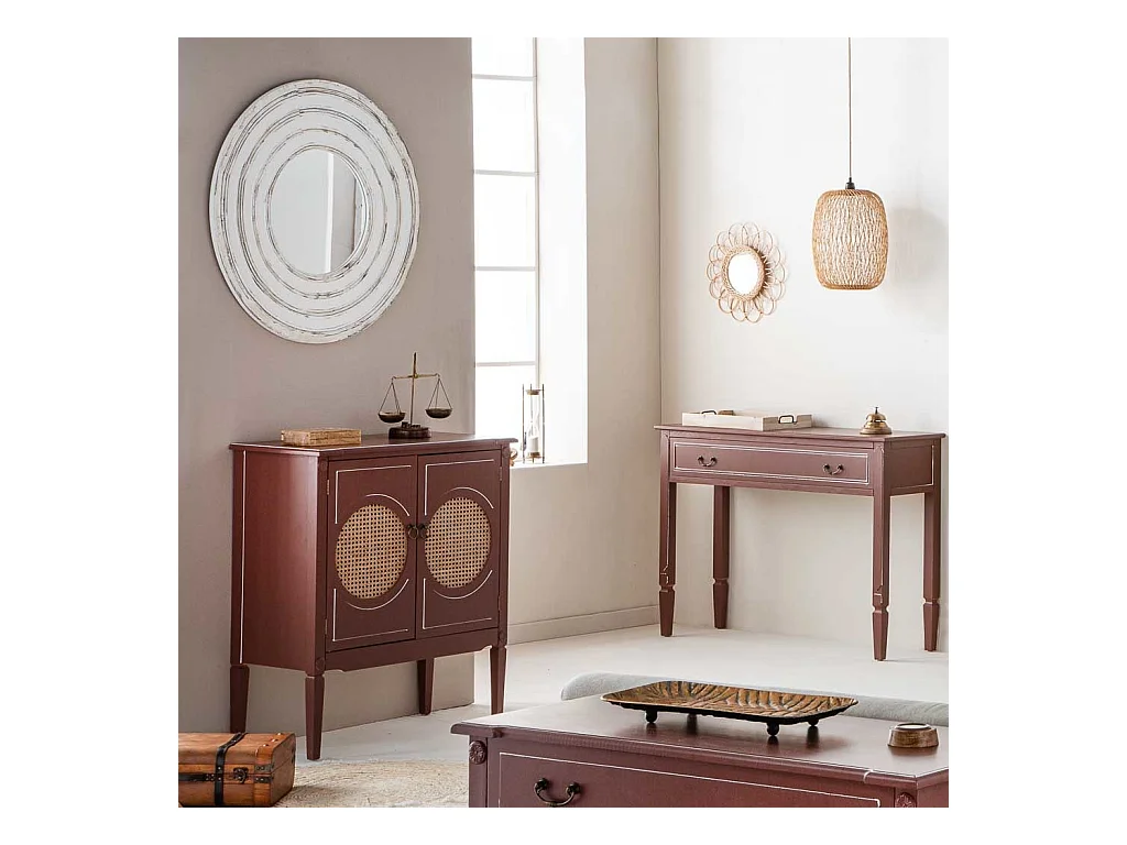 Braune Halle aus Holz und Rattan, 80x38x90h cm