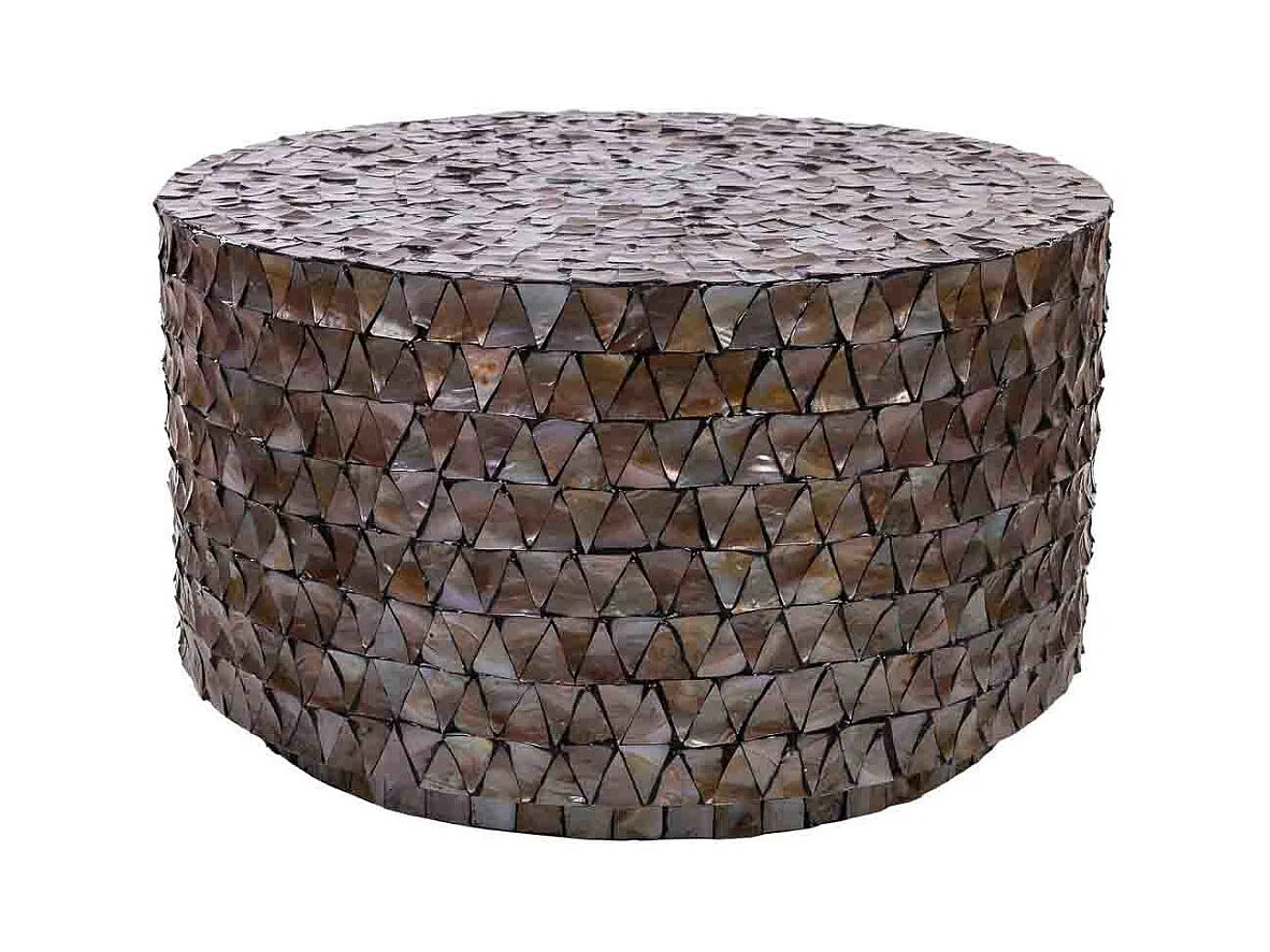 Couchtisch aus braunem Holz und Perlmutt, 77x43,5 cm