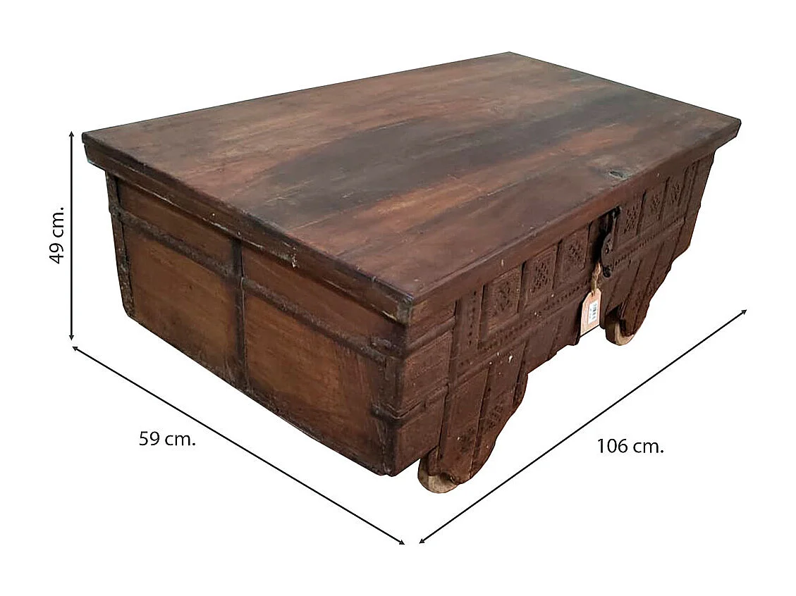 Brauner Truhentisch aus Holz und Metall, 106 x 59 x 49 h cm