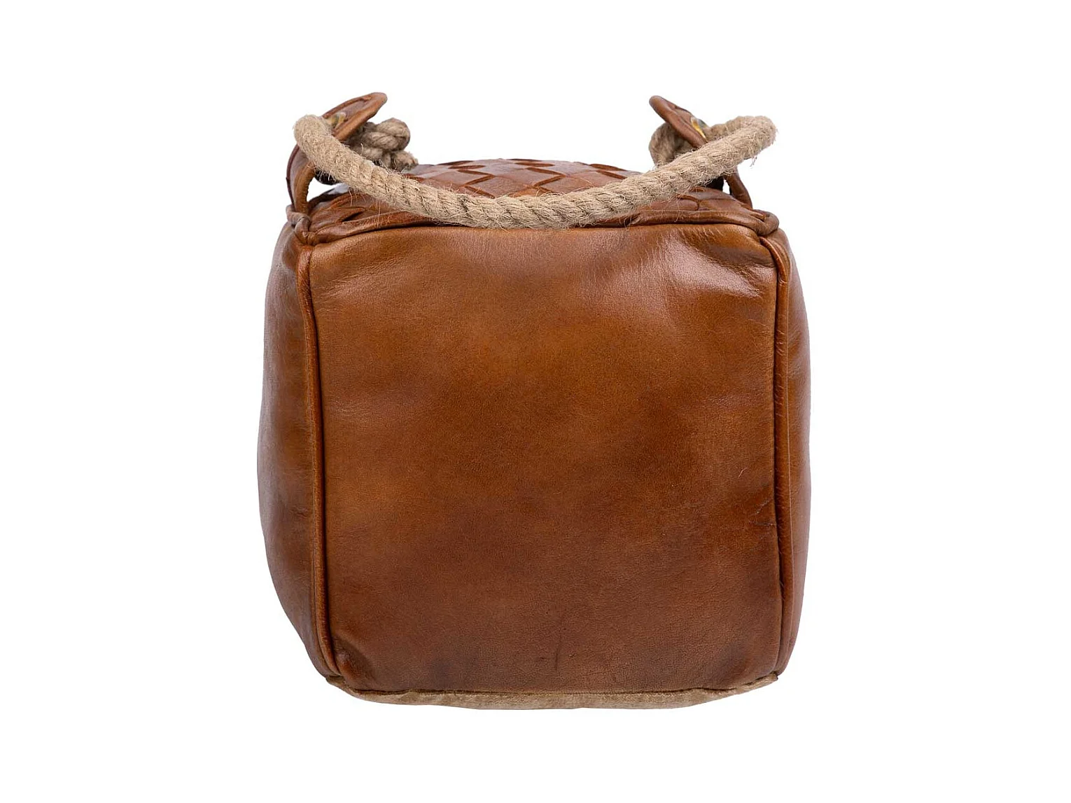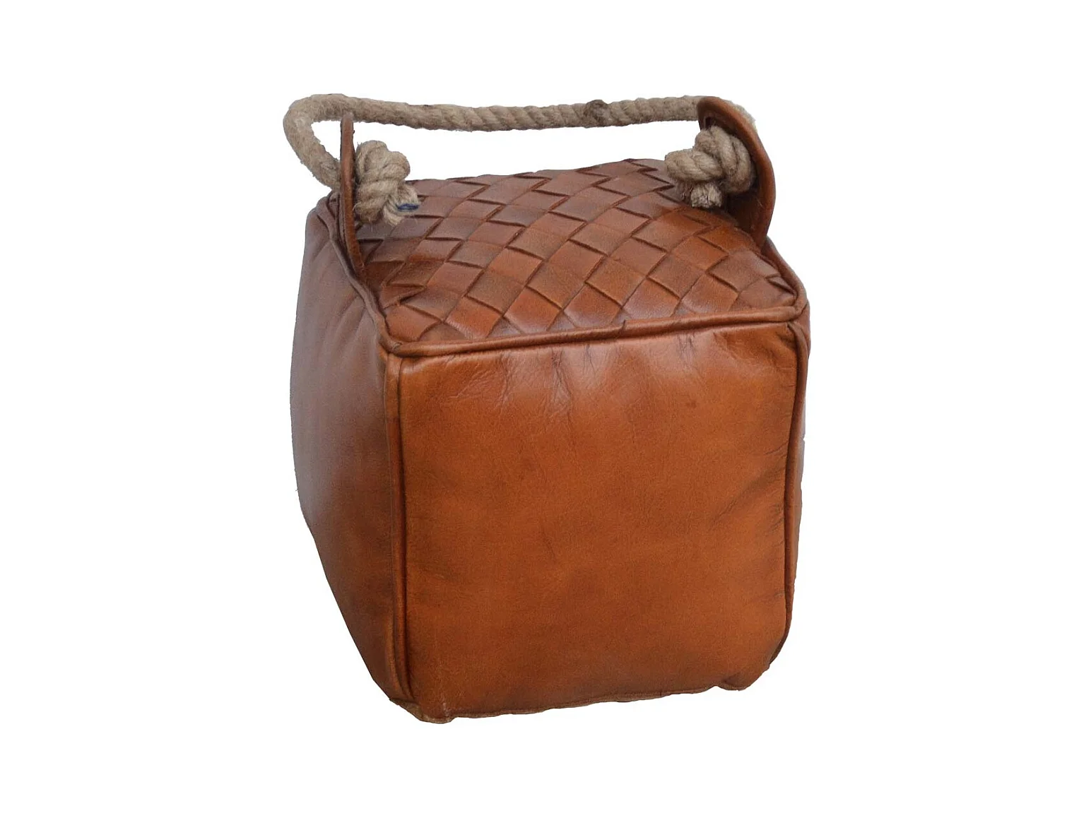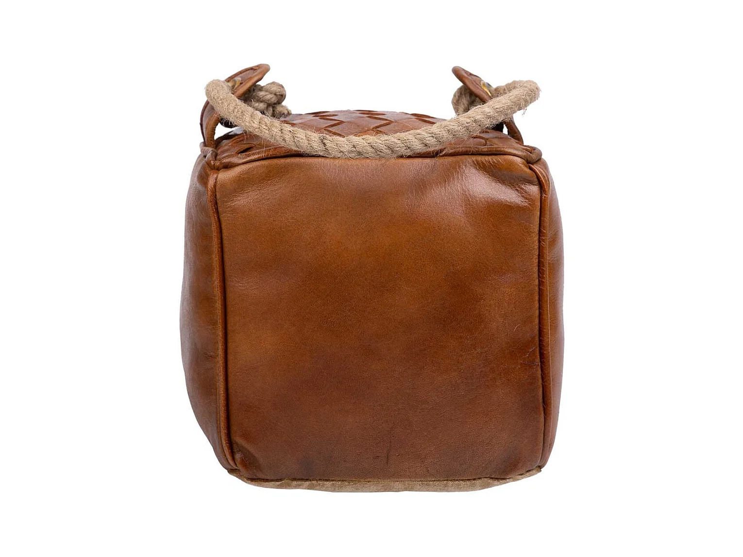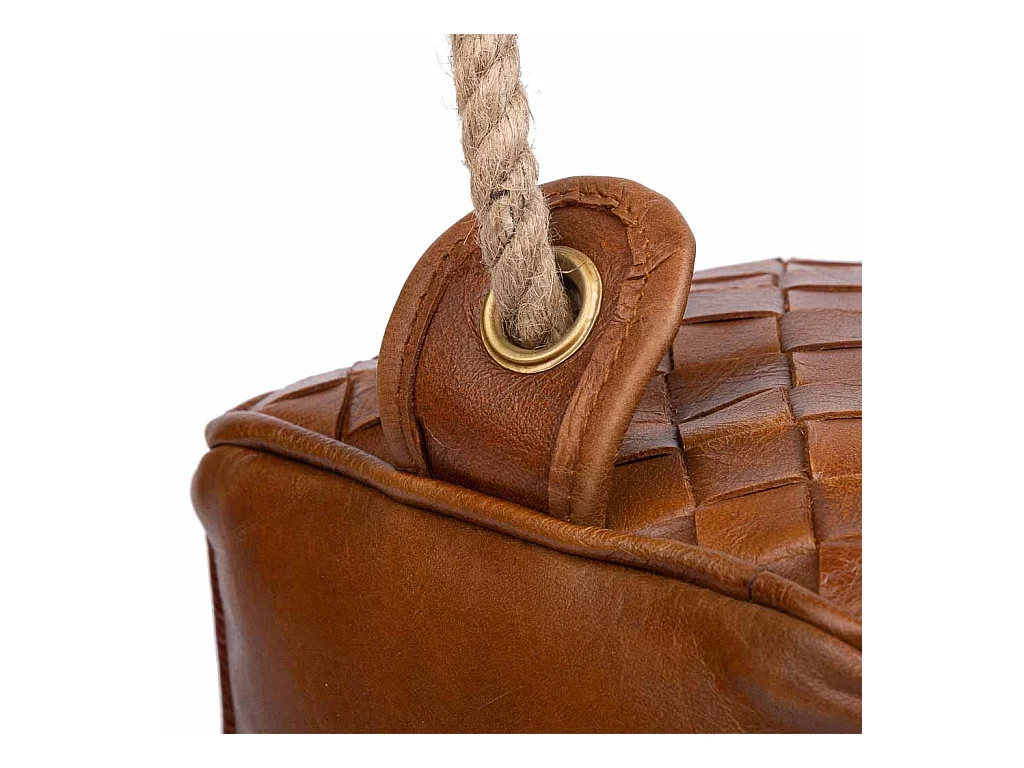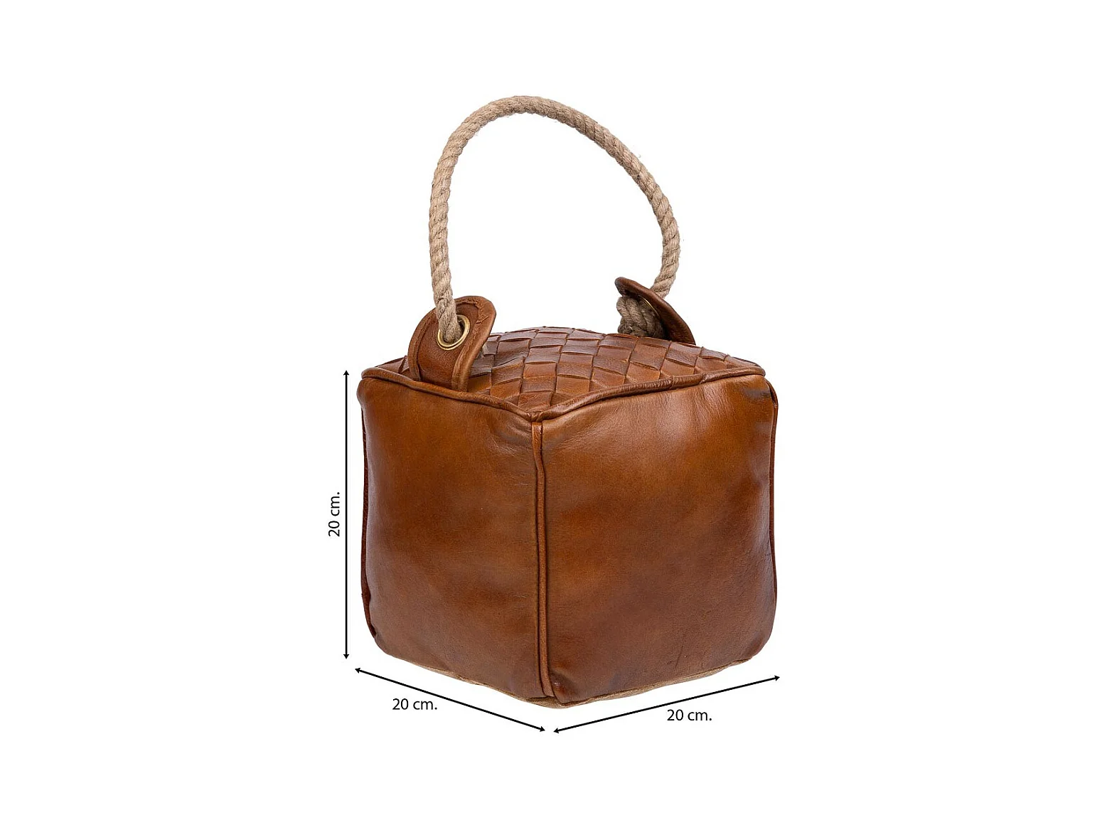 Brauner Türstopper aus Leder und Seil, 20x20x20h cm
