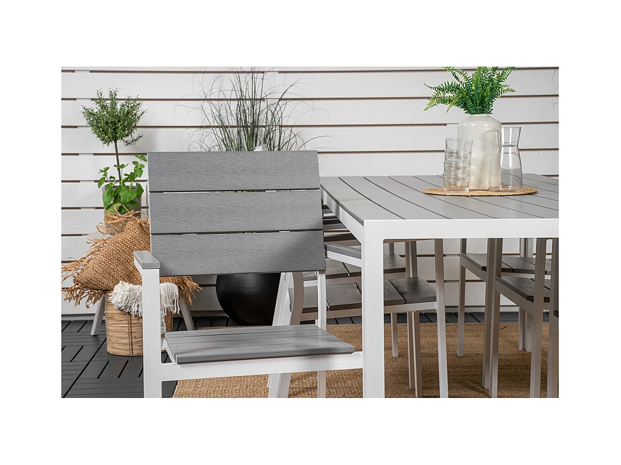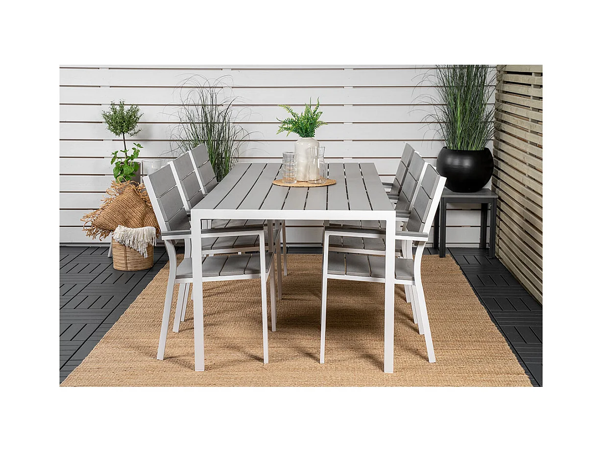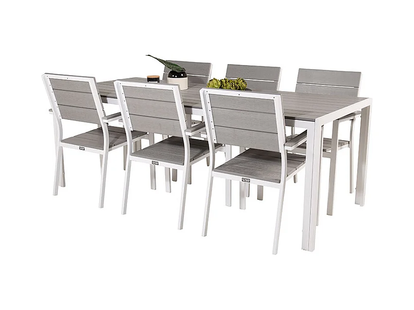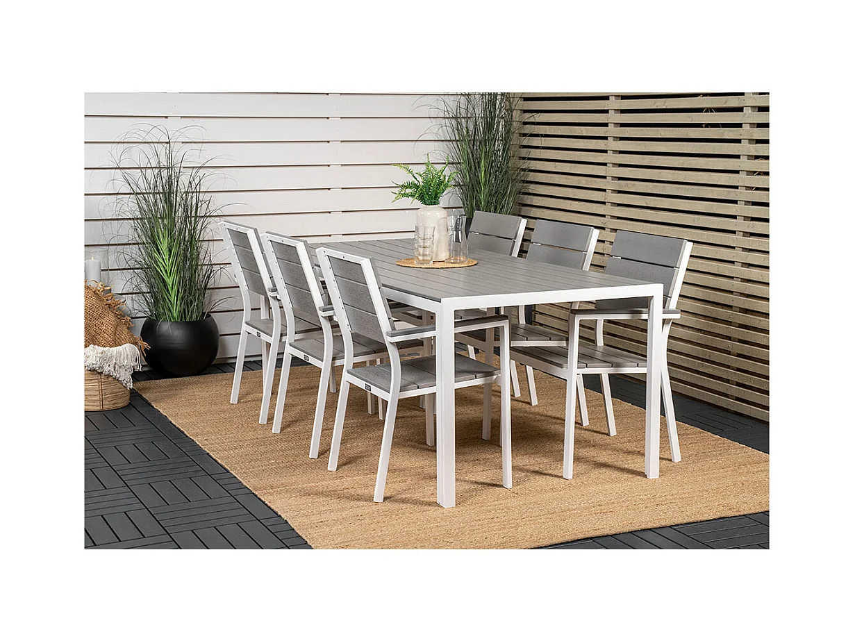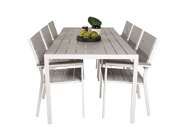 Break Gartenset Tisch 90x205cm grau, 6 Stühle grau.