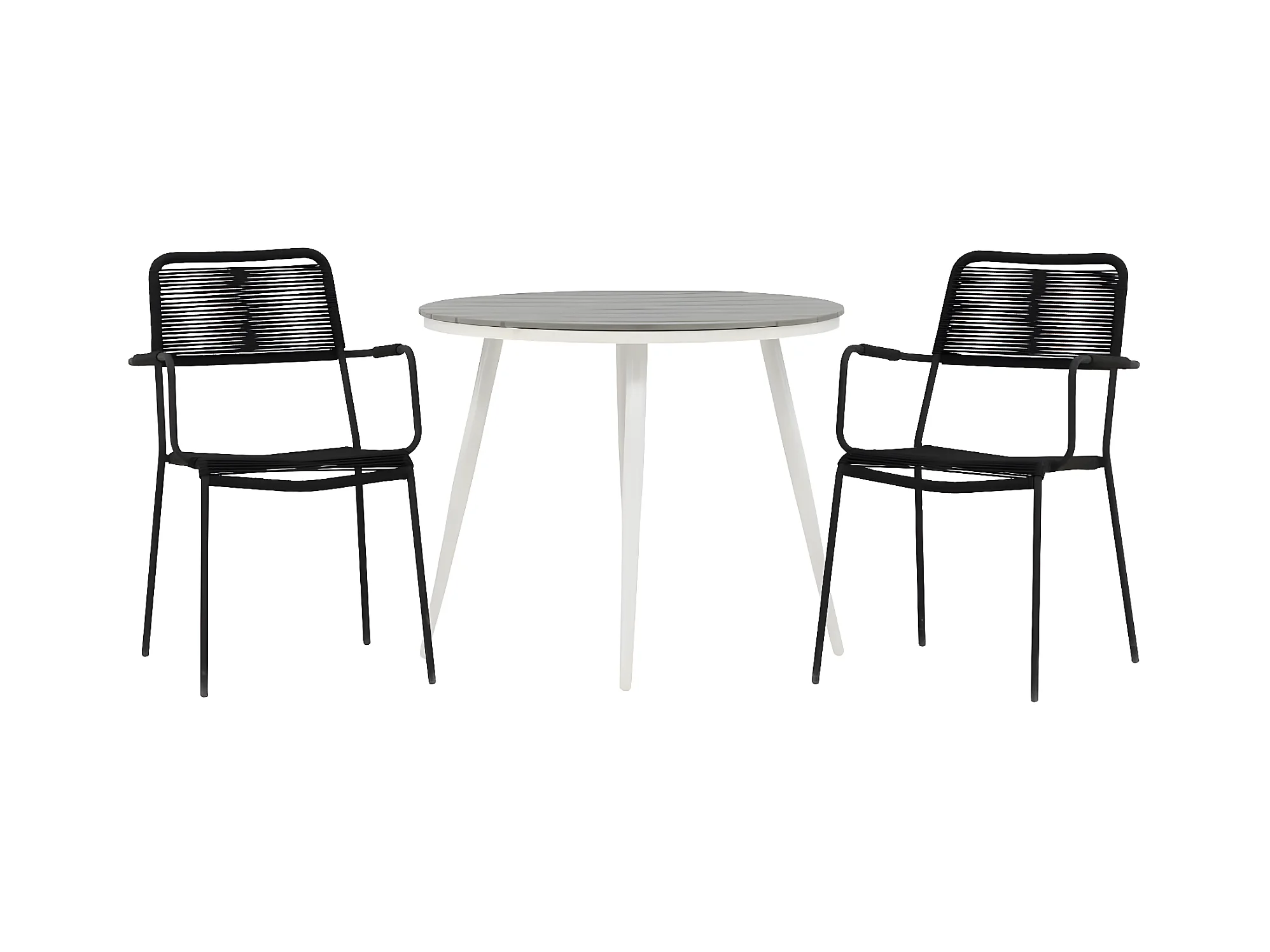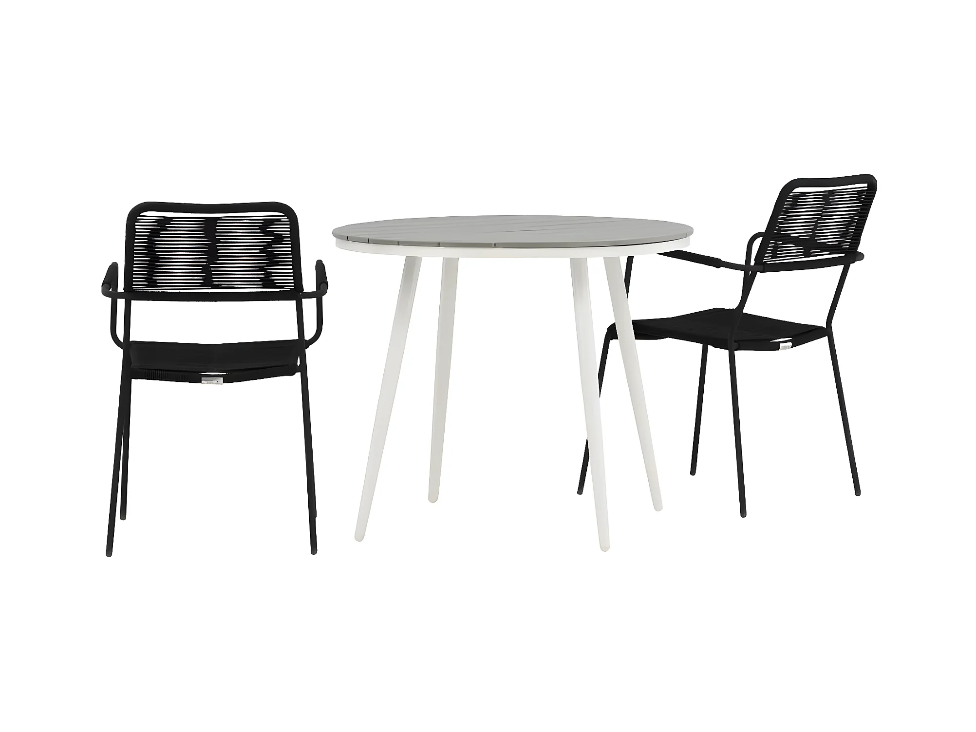 Break Gartenset Tisch Ø90cm grau, 2 Stühle Lindos schwarz.
