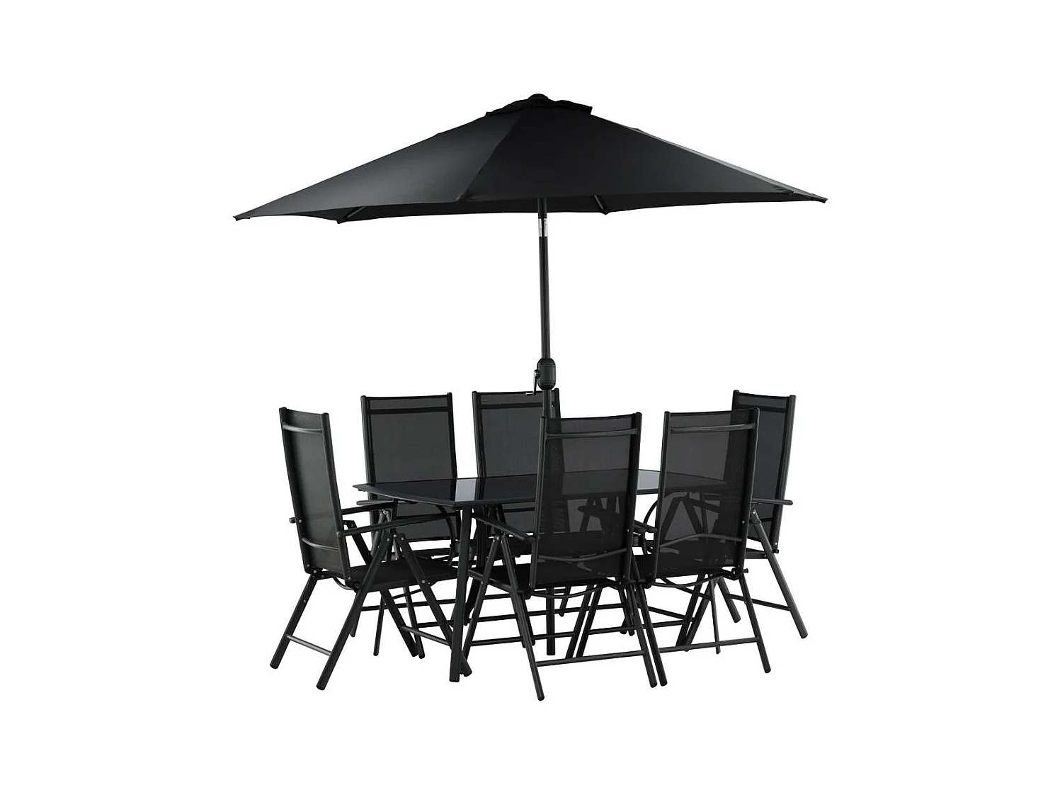 Brekki Gartenset Tisch 90x150cm schwarz, 6 Stühle schwarz.