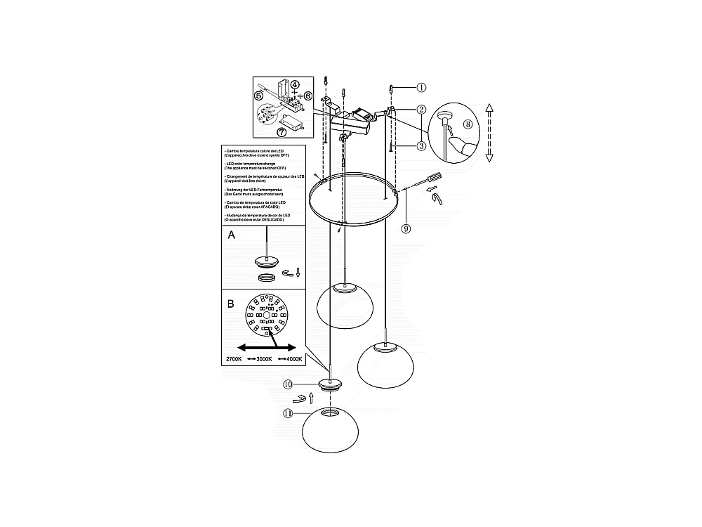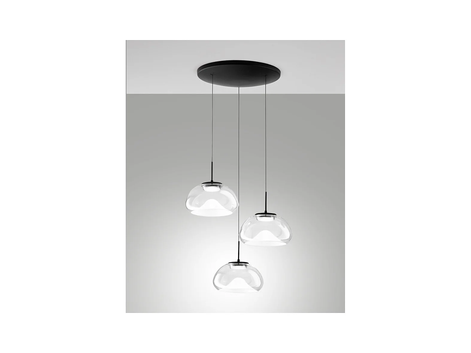 Brena - Fabas Luce 3-flammige runde Pendelleuchte - 30 W dimmbare LED - Transparente runde Deckenrosette d. 35 cm