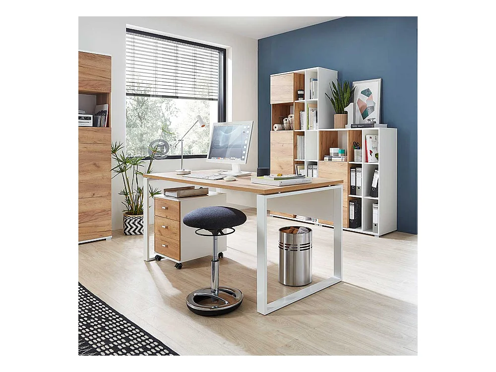 Büroschreibtisch in Weiß und Wildeiche Dekor Made in Germany