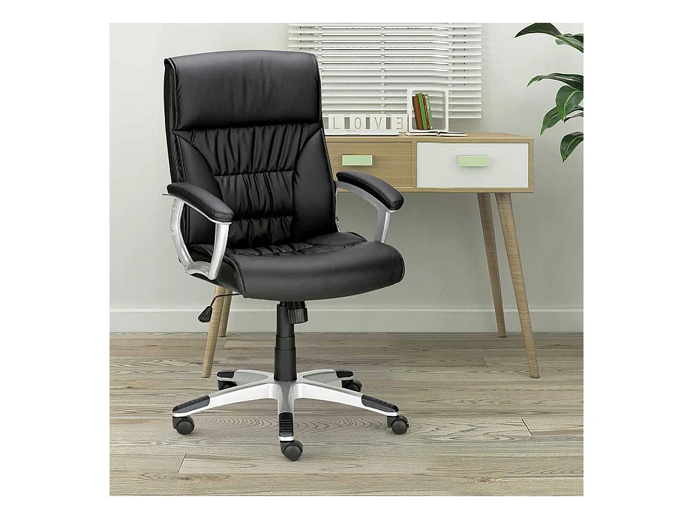 Bürosessel in Schwarz Kunstleder verstellbarer Lehne