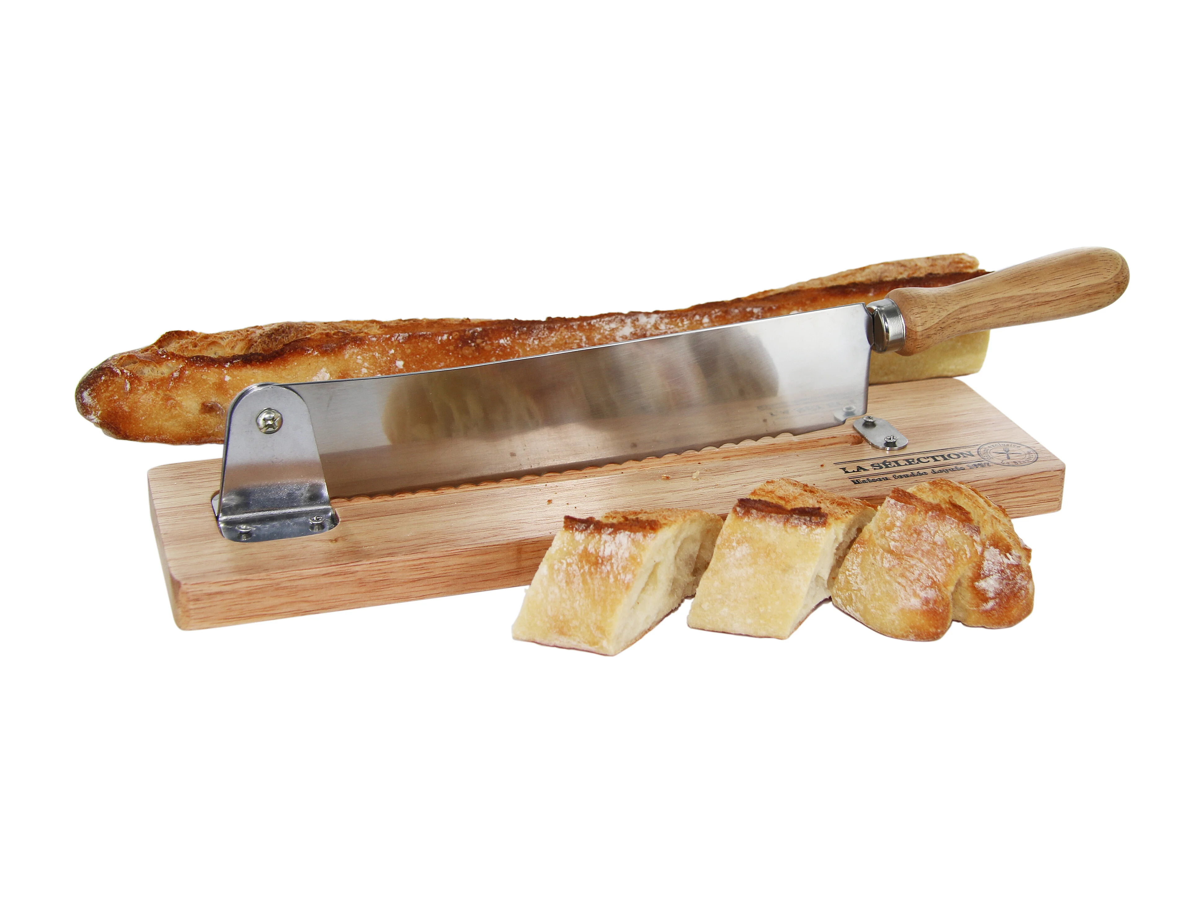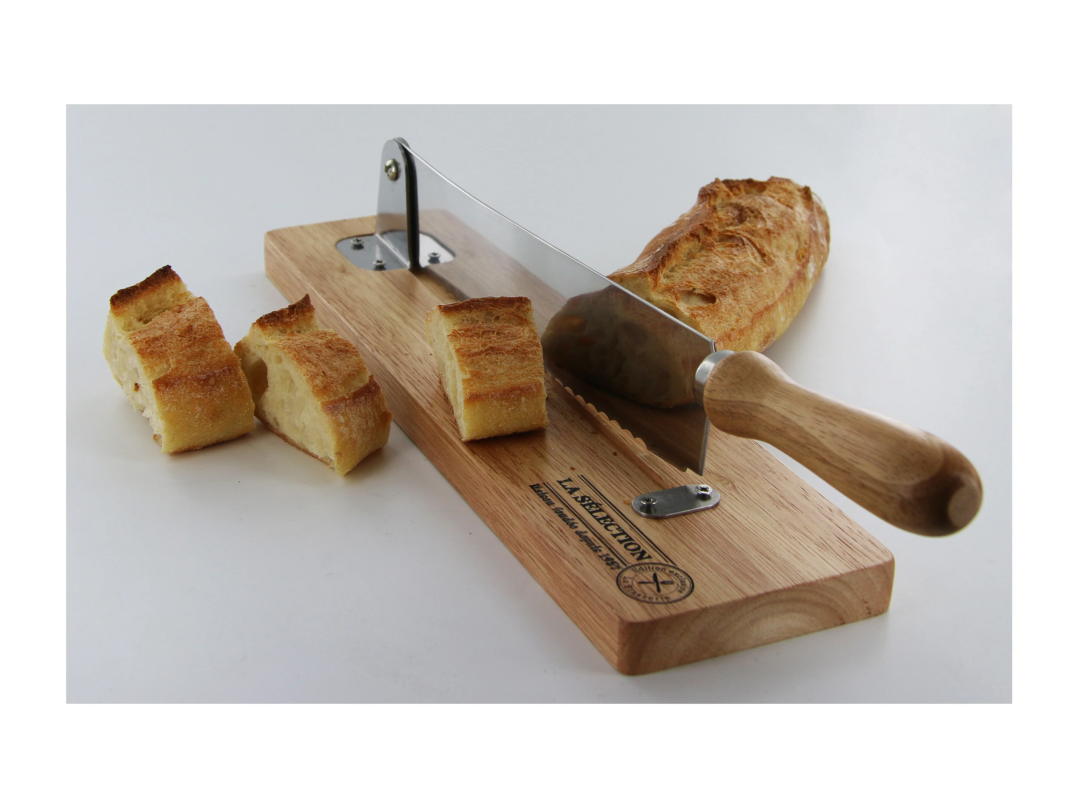 Brotschneidemaschine aus Holz und Edelstahl