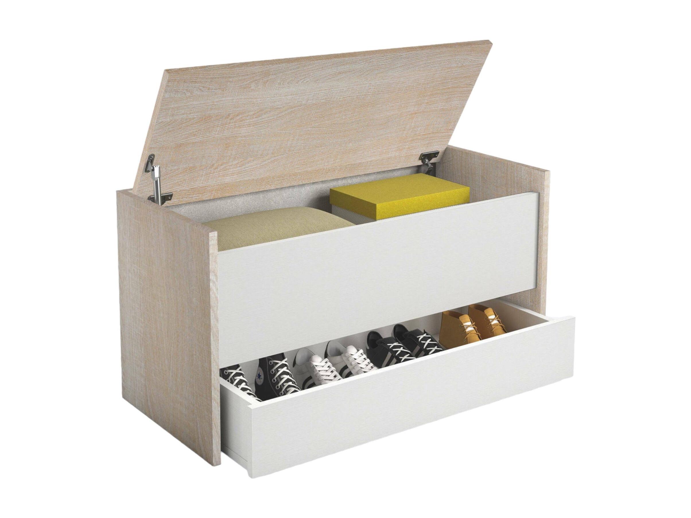 Brust Lantana, modernes Eingangsmöbel mit Schuhregal, Truhe mit zwei Behältern, 100 % Made in Italy, 90 x 40 x 46 cm, Weiß und Eiche,