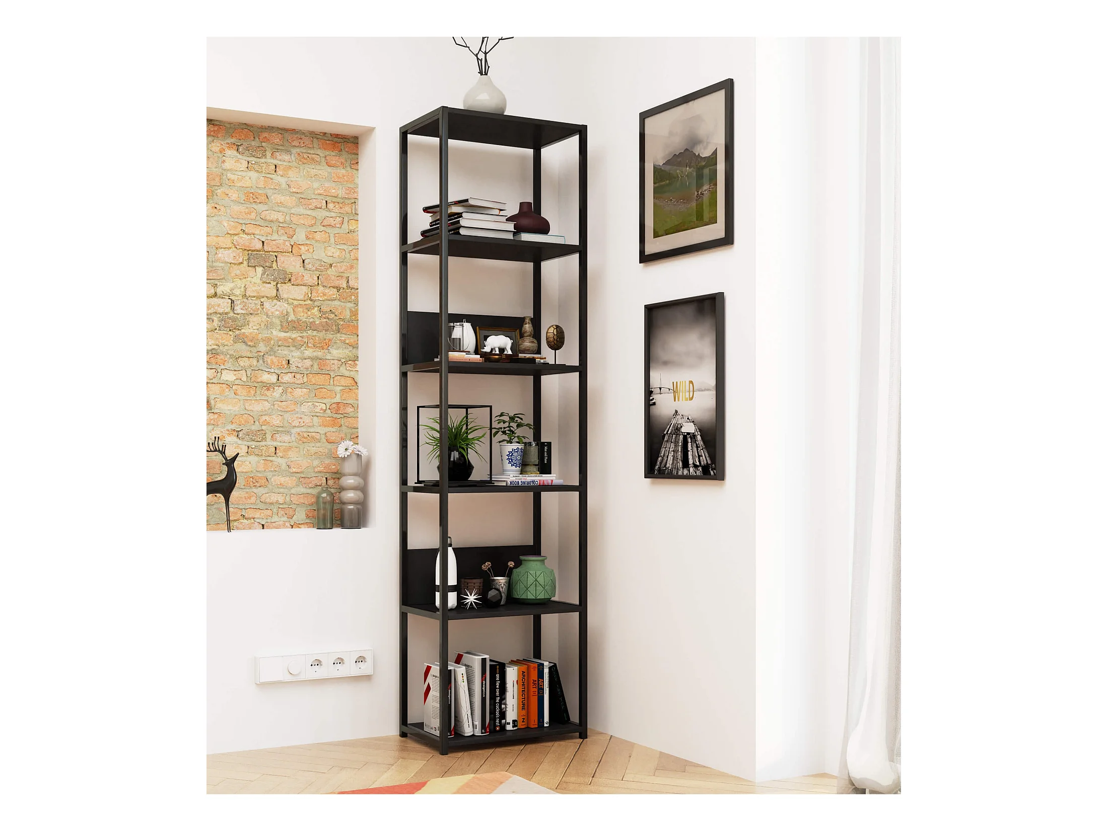Bücherregal AKORD Metallregal mit Holzwerkstoff-Ebenen Schwarz Breite 50 cm 6 Ebenen B50 x H192 x T32 cm