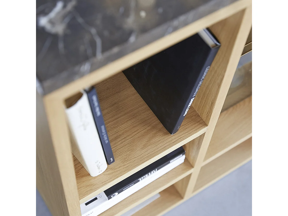 Bücherregal aus Eichenholz und dunkler Marmorplatte Eyota 131x93