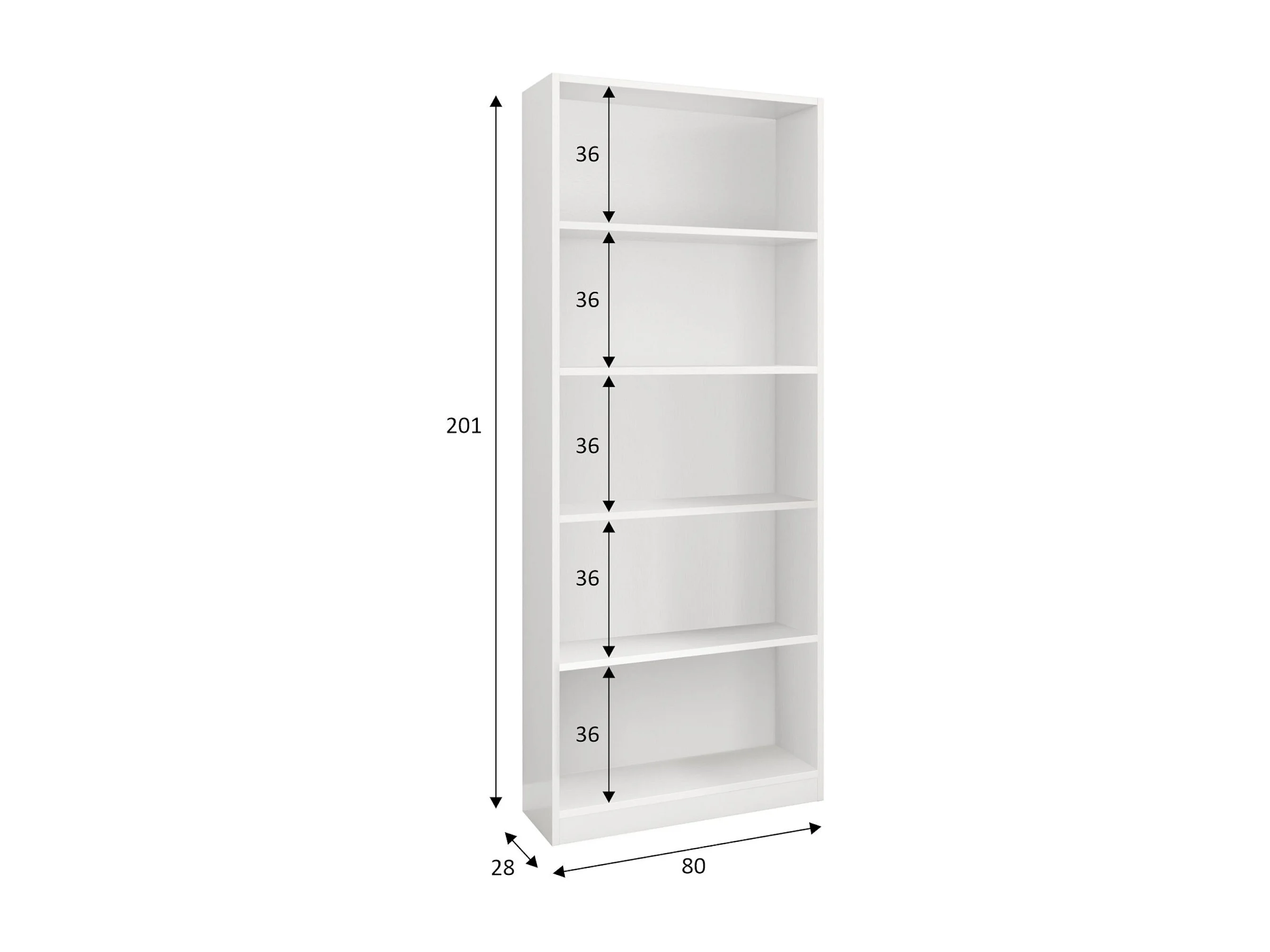 Bücherregal Boston, Lineares Bücherregal mit 4 Regalen, Büro- oder Schlafzimmerregal, Modernes Bücherregal, 80x28h201 cm, Weiß