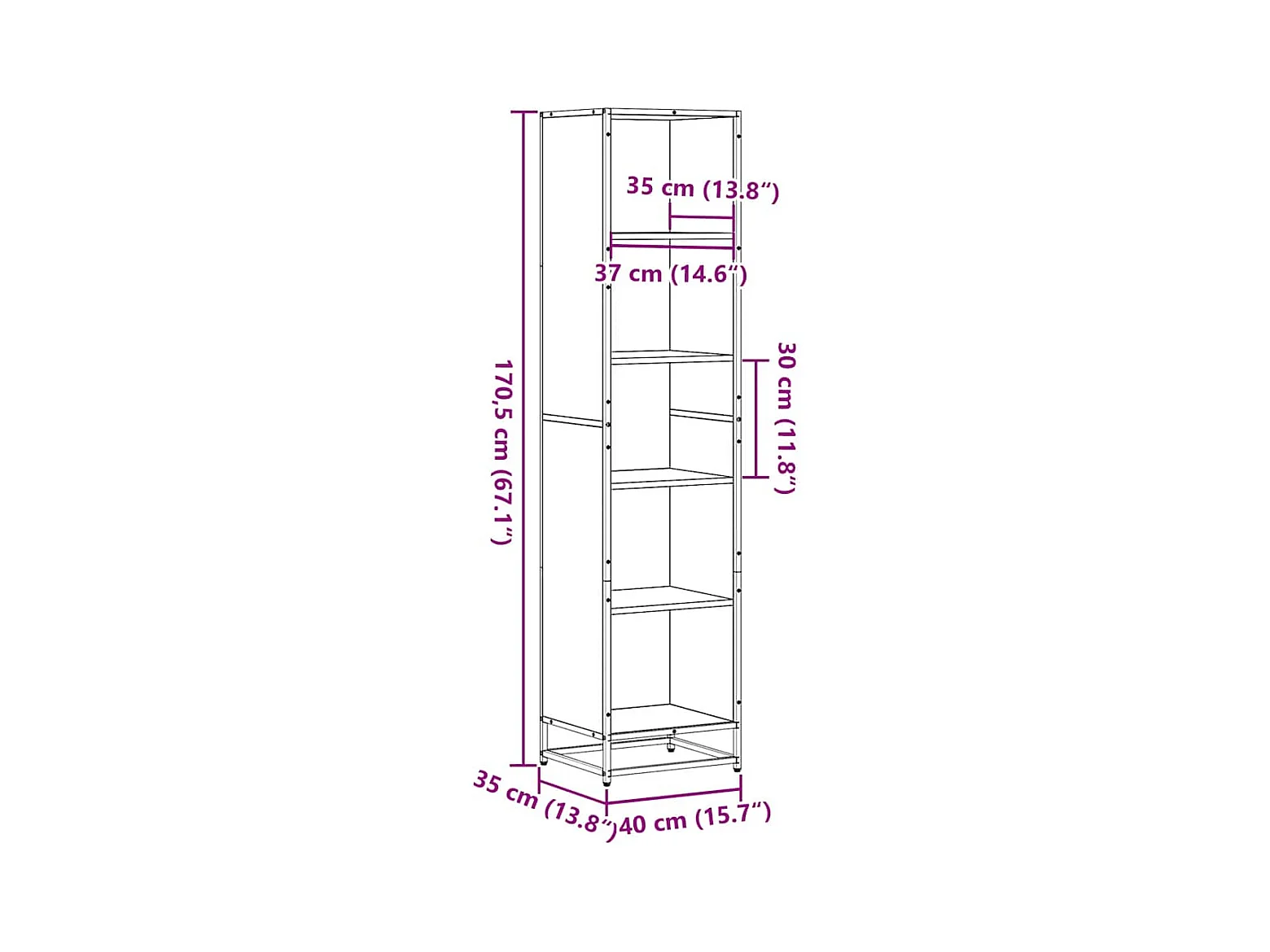 Bücherregal Braun Eichen-Optik 40x35x170,5 cm Holzwerkstoff