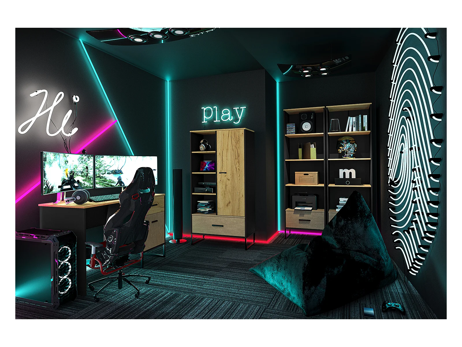 BÜCHERREGAL Colt schwarz / Craft Gold Eiche / Premium Steel 58 / 40 / 190cm