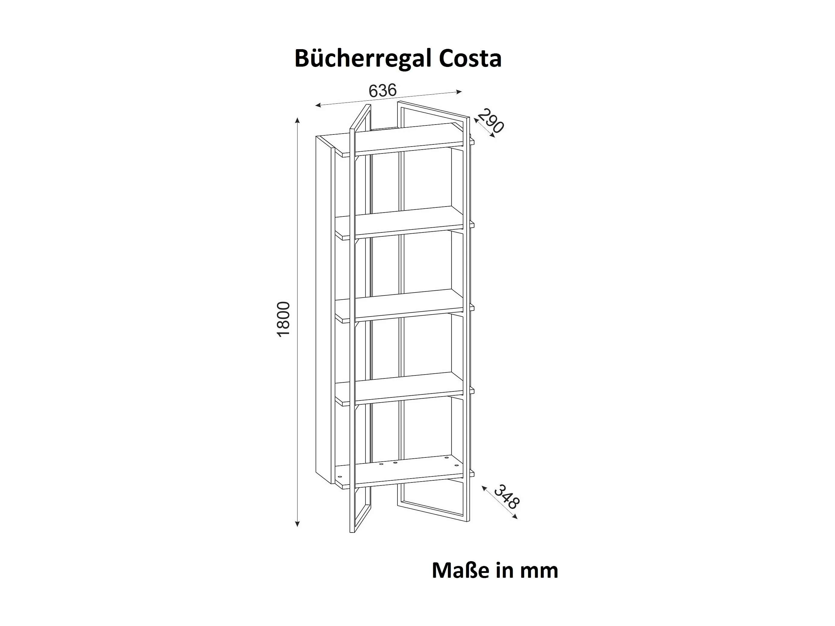 Bücherregal Costa mit Metallfüße und Rahmen Eiche
