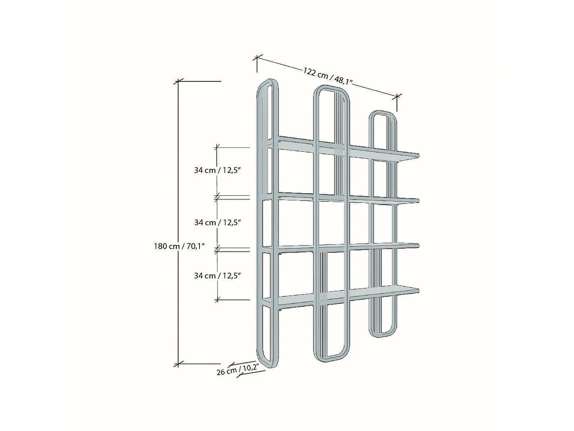 Bücherregal Dbourabi, Büroregal, Mobiler Buchhalter, Bücherbrett, 125x28h180 cm, Gold
