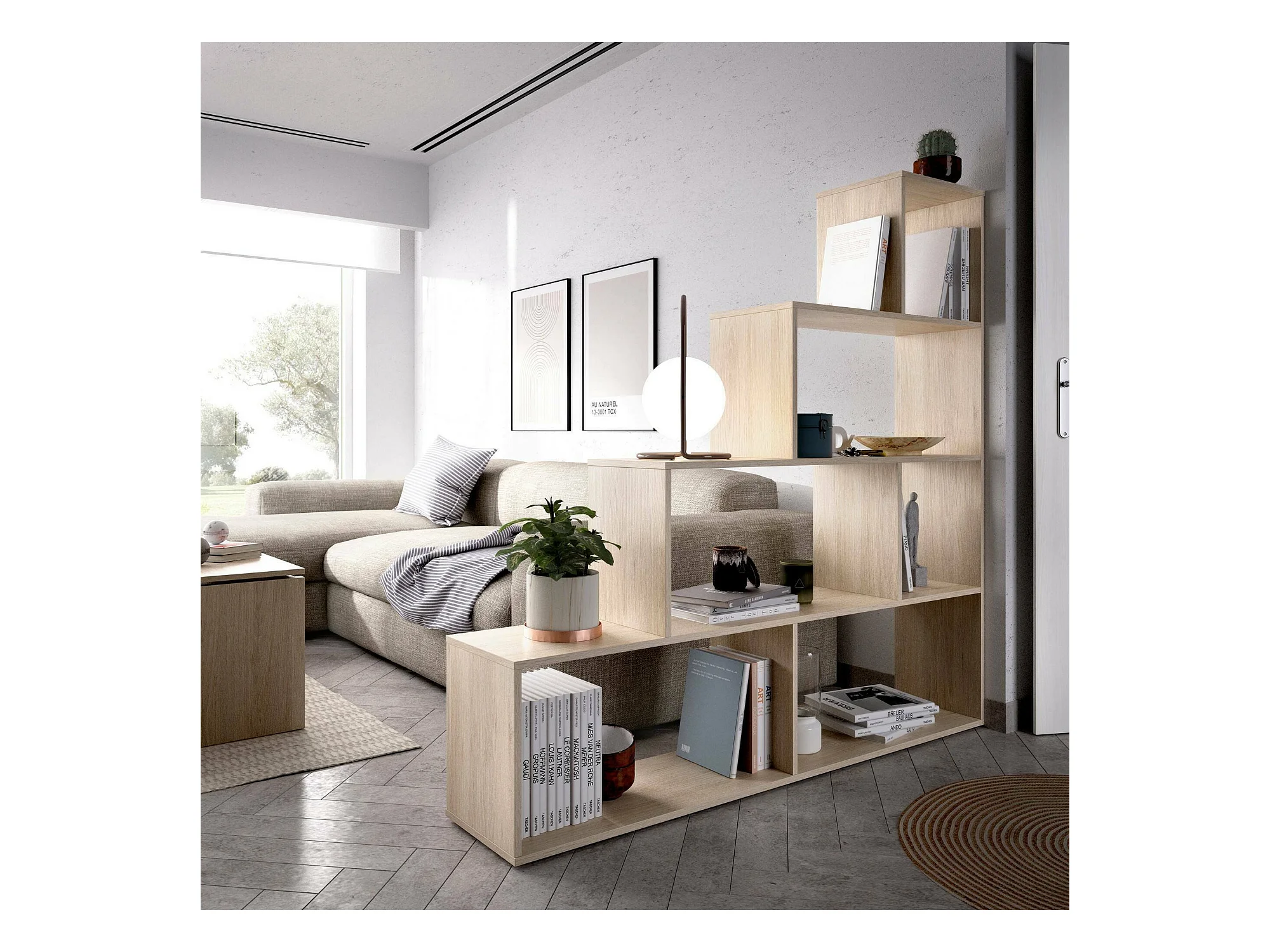 Bücherregal Dleverb, Mehrzweck-Büroregal, Bücherregal mit 6 Regalen, 145 x 29 x 145 cm, Eiche