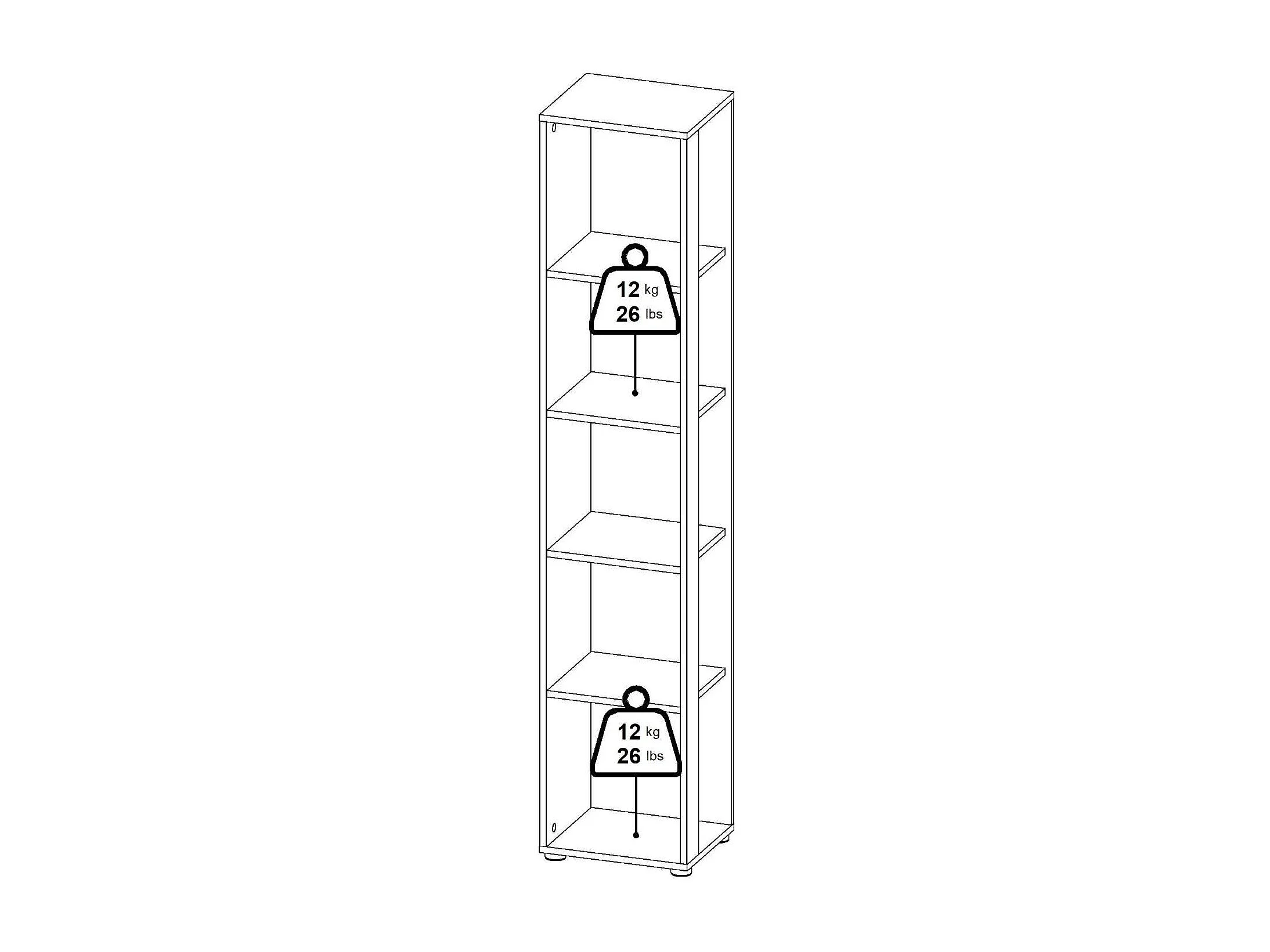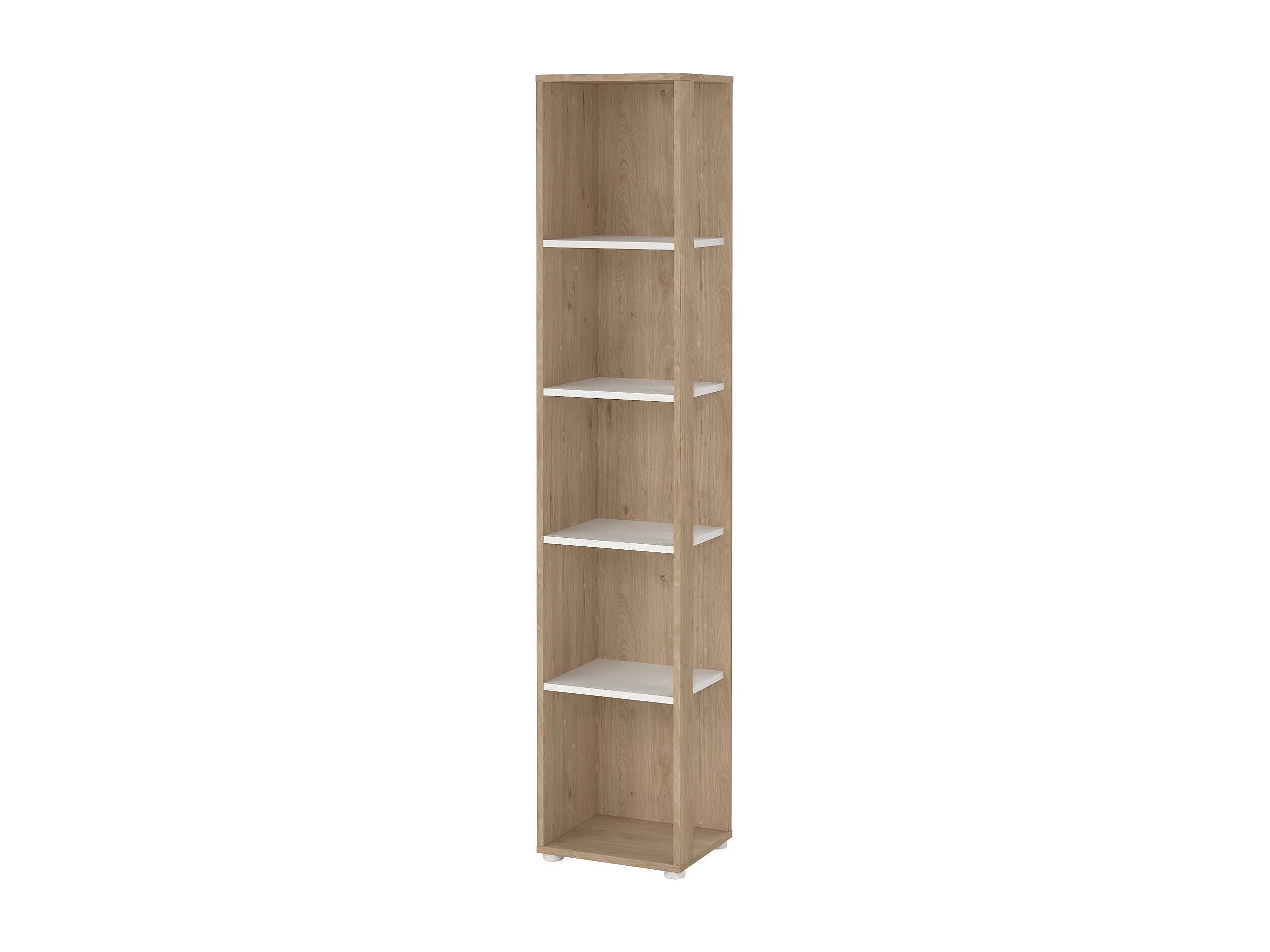 Bücherregal Dtalarin, Büroregal, Mobiler Buchhalter, Bücherbrett, 41x34 h205 cm, Eiche und Weiß