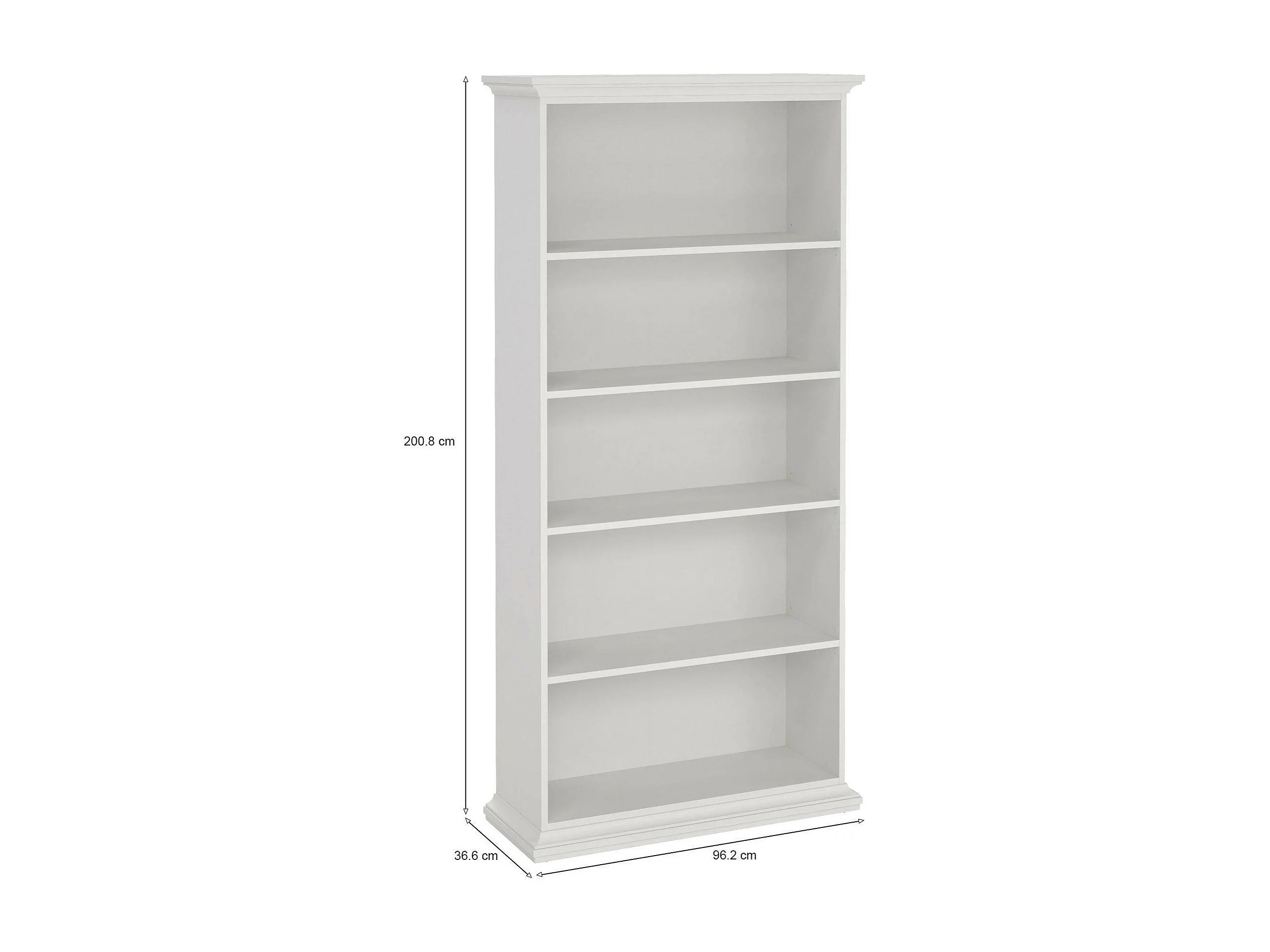 Bücherregal Dtaran, Büroregal, Mobiler Buchhalter, Bücherbrett, 96x37 h201 cm, Weiß