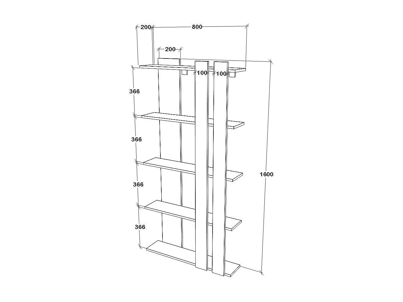 Bücherregal Elmo, 5 Regalböden, Weiß/Eiche Artisan, 80 x 20 x 160 cm