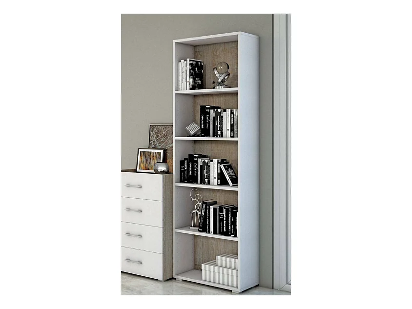 Bücherregal Girasole, Bibliothek mit 4 verstellbaren Regalen, Bücherregal, Wandschrank mit Regalen, 100 % Made in Italy, 60 x 30 x 195 cm, Weiß und Eiche