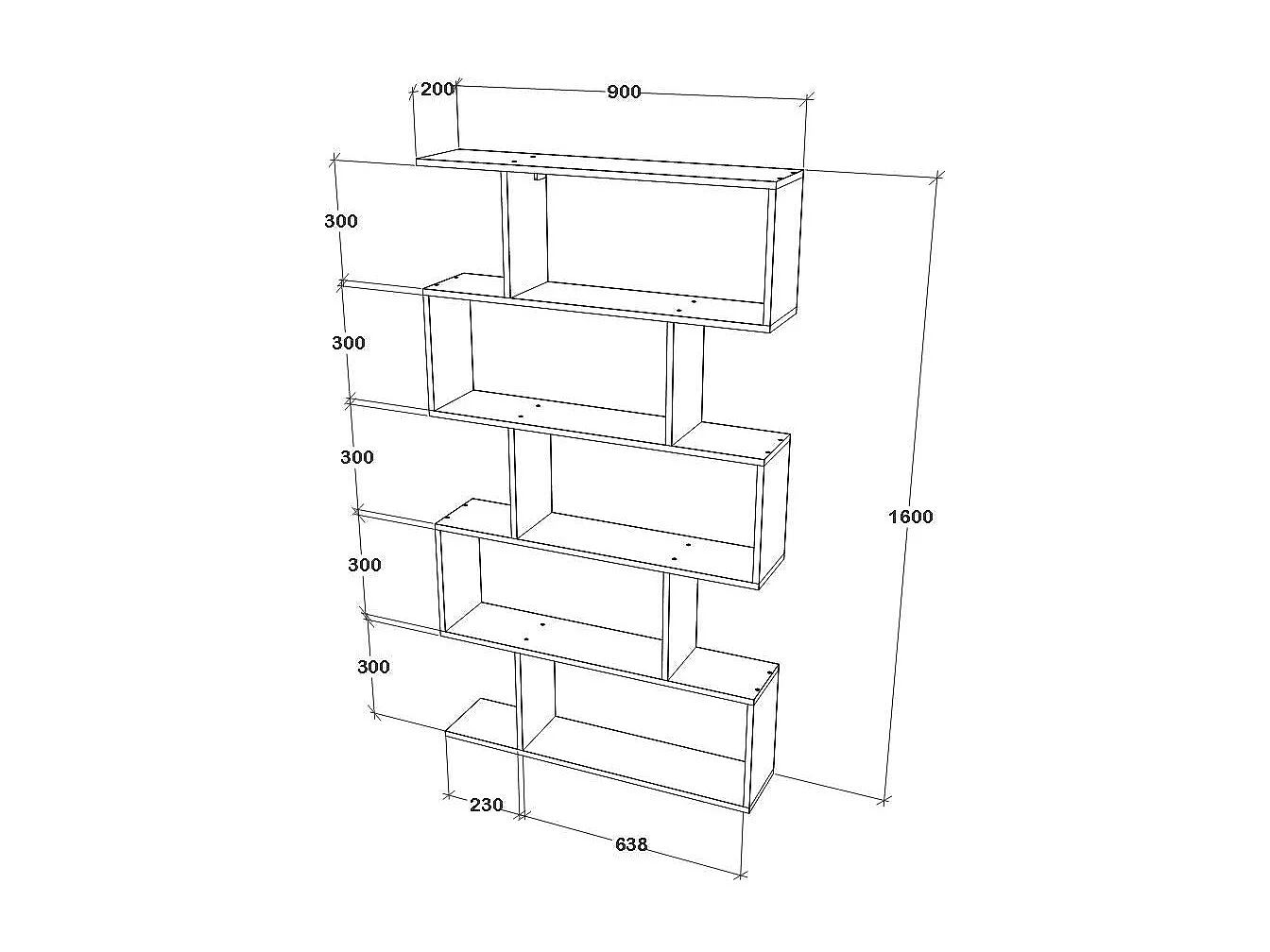 Bücherregal Kimo, 5 Fächer, Eiche Artisan, 90 x 20 x 160 cm