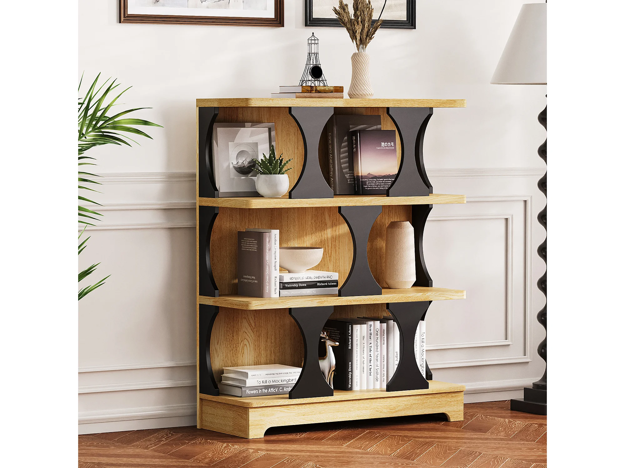 Bücherregal mit 3 Ablageböden – 80 x 30 x 100 cm – MDF – Hohldesign – Natur + Schwarz