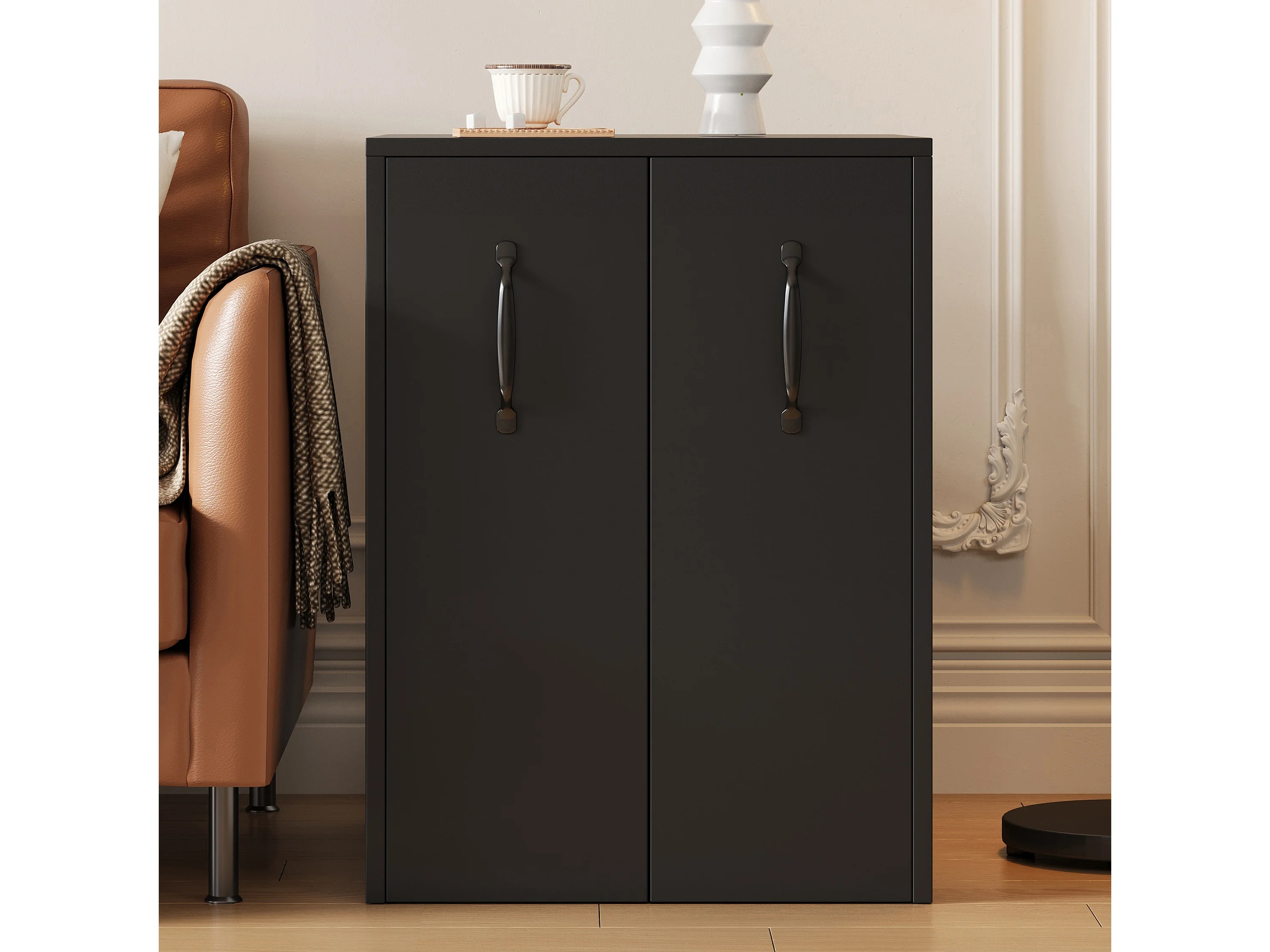 Bücherregal mit Rollen - Mobiler Sideboard - Ausziehbare Seitenschubladen - Linke und rechte Seite austauschbar - Schwarz
