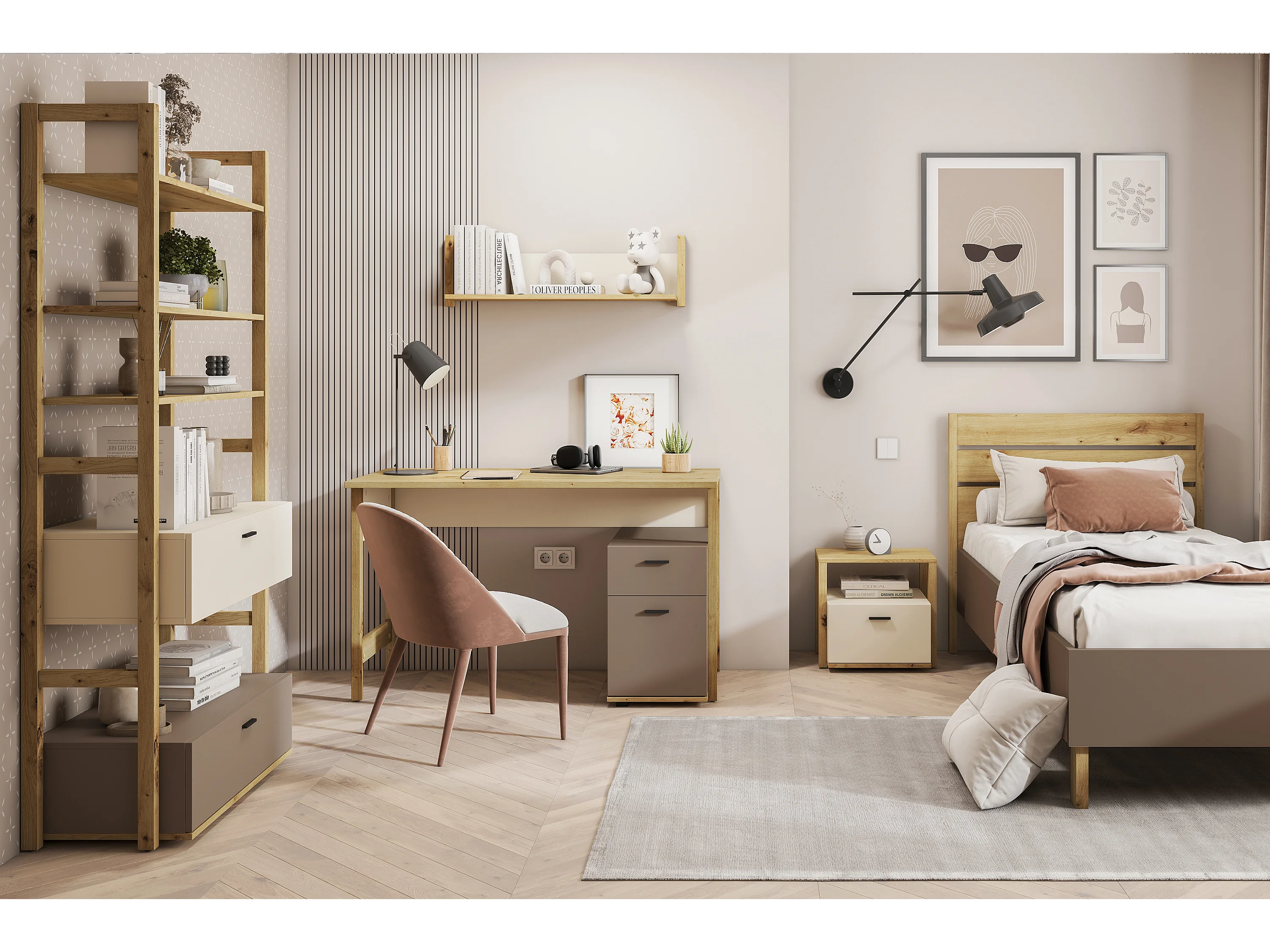 Bücherregal mit Schubladen für das Jugendzimmer - cremefarben - TRIDA