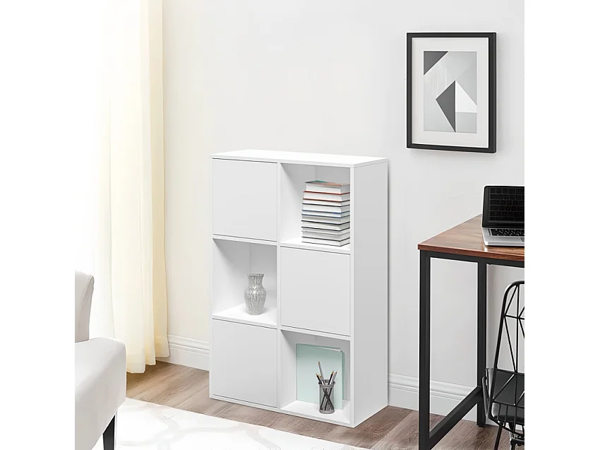 Bücherregal mit Türen Büromöbel 6 Fachböden weiß 65x30x97cm Ika 5