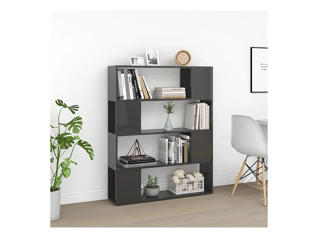 Bücherregal Raumteiler,Bücherschrank Hochglanz-Grau 100x24x124 cm -gkd794933