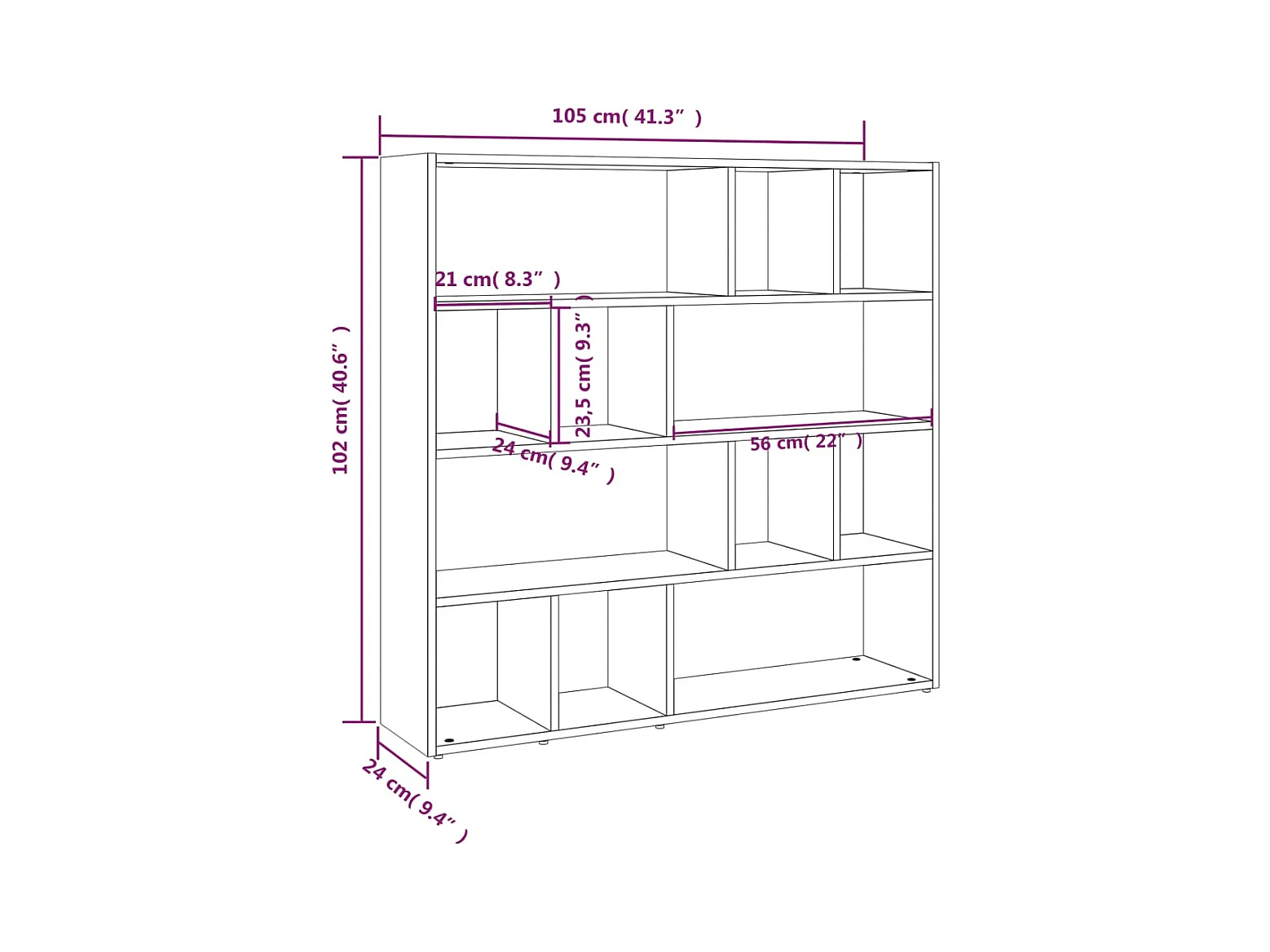 Bücherregal/Raumteiler Weiß 105x24x102 cm