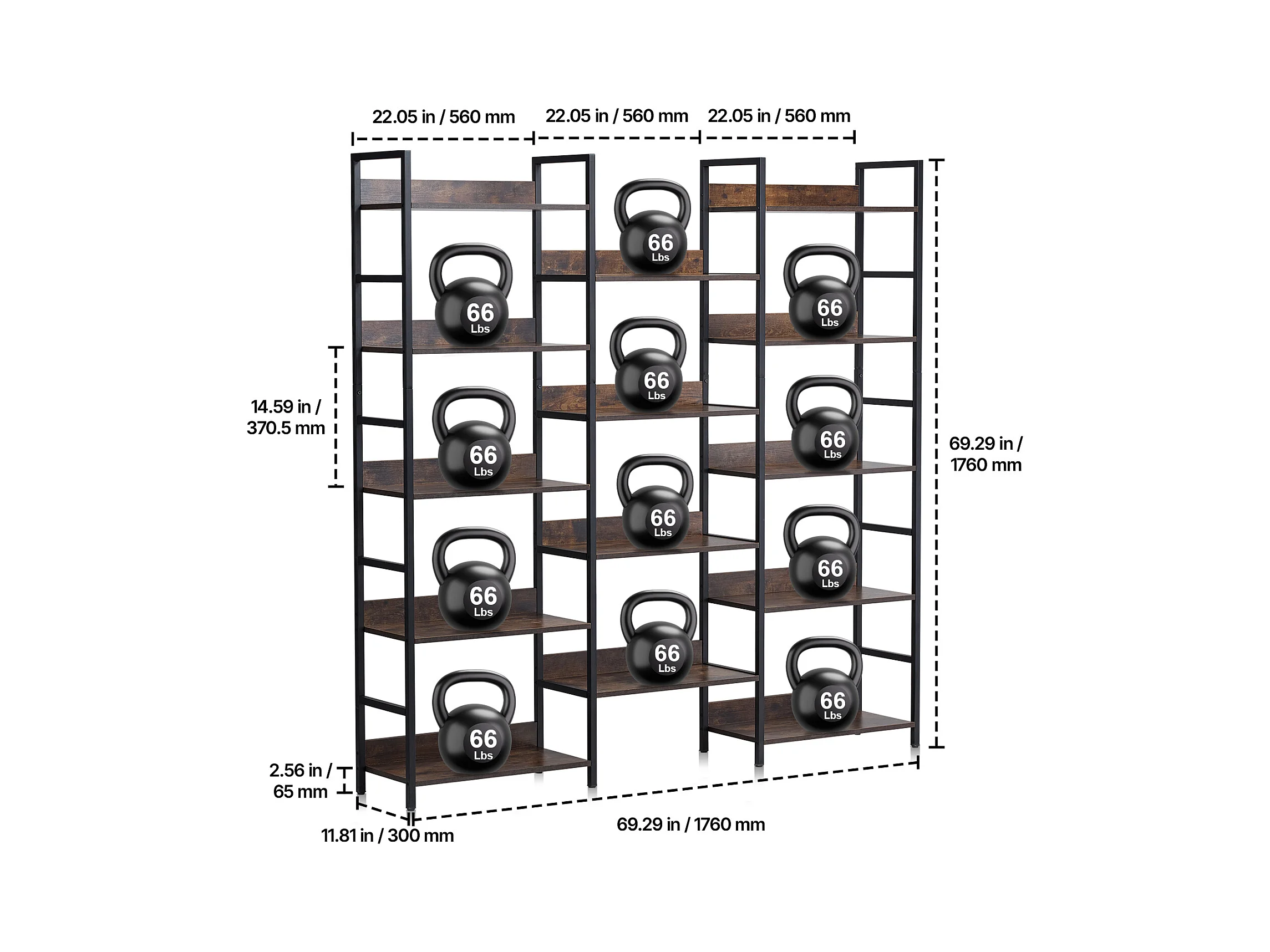 Bücherregal SucceBuy, Rustikales Metallmodell mit 14 Ebenen für Wohnzimmer, Schlafzimmer und Büro