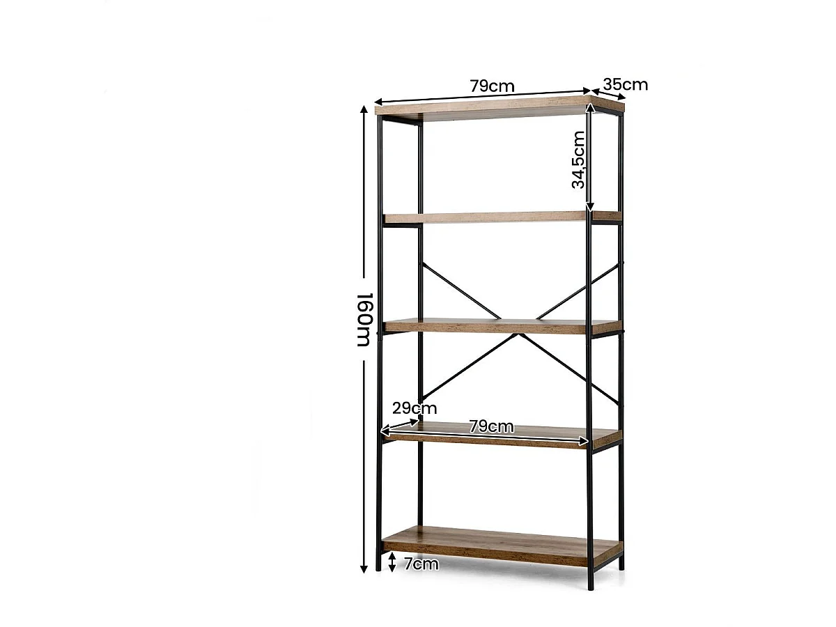 Bücherregal mit 5 Ebenen & Metallrahmen & Industrie-Design Standregal Büroregal Braun