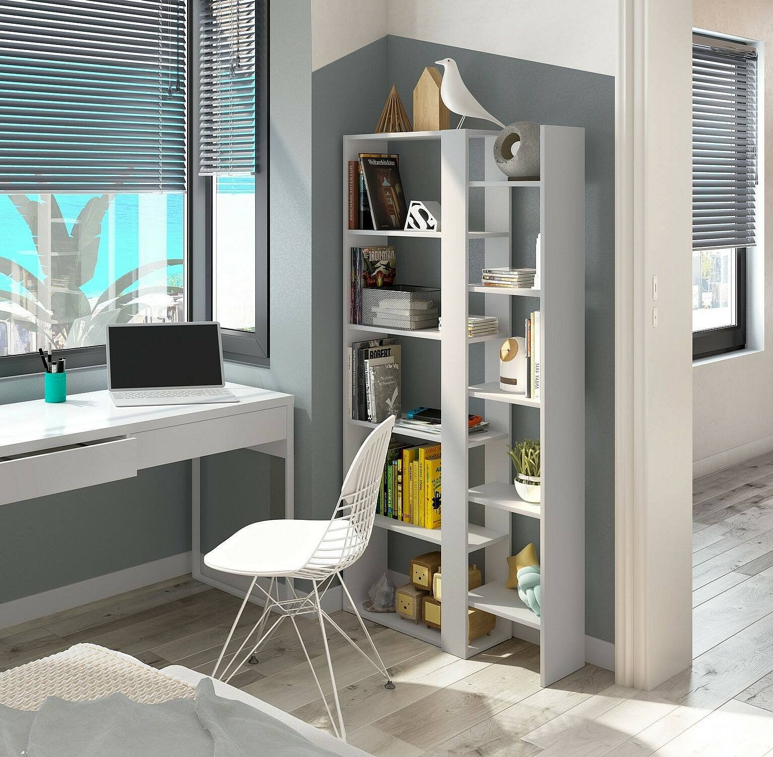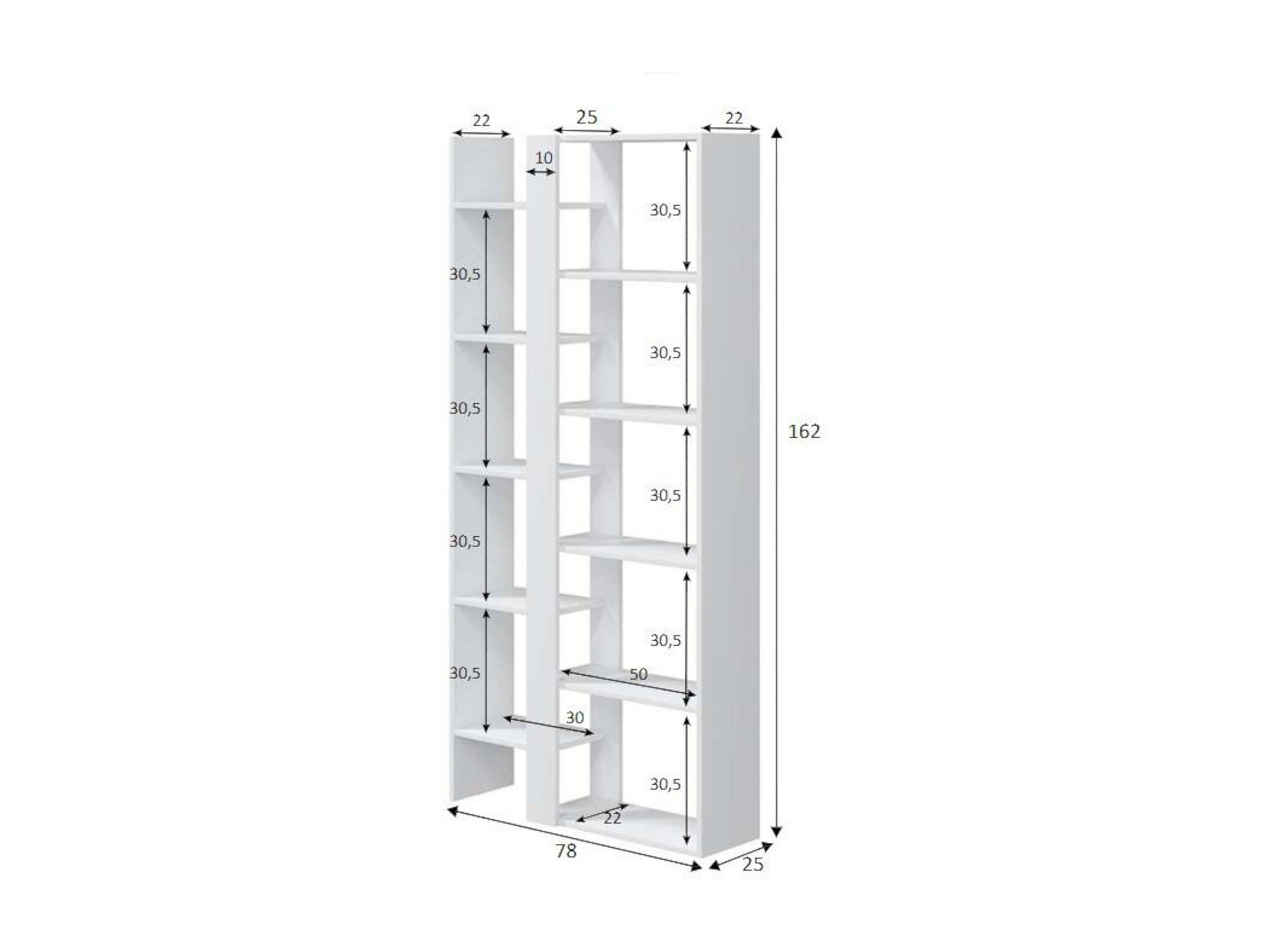 Bücherregal Waukegan, Büroregal mit 11 Regalen, Bücherregal, Bibliothek, 78x25h162 cm, glänzend weiß