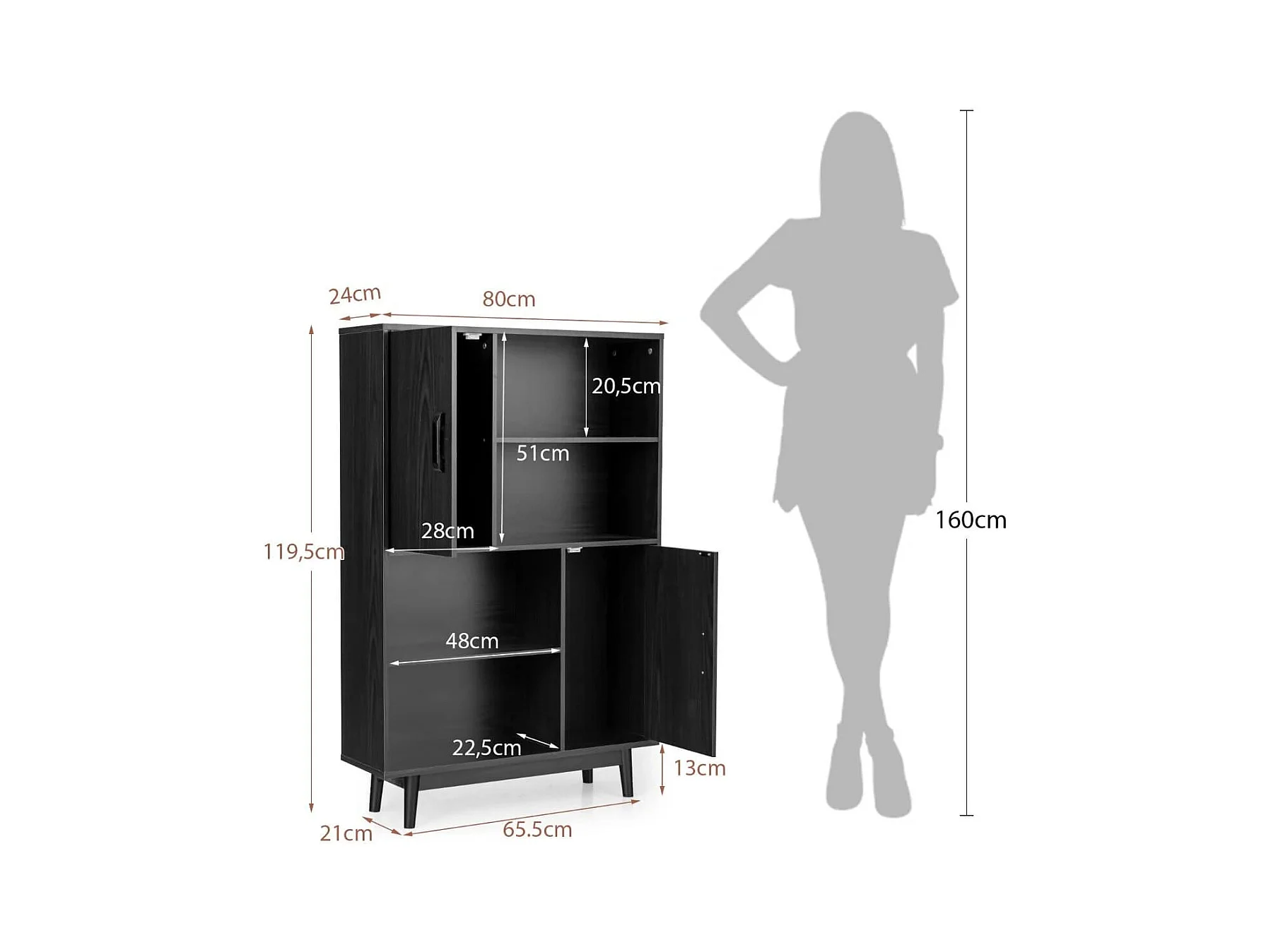 Hölzernes Bücherregal 4-stöckiges Bücherregal mit 2 Türen Aufbewahrungsschrank Schwarz