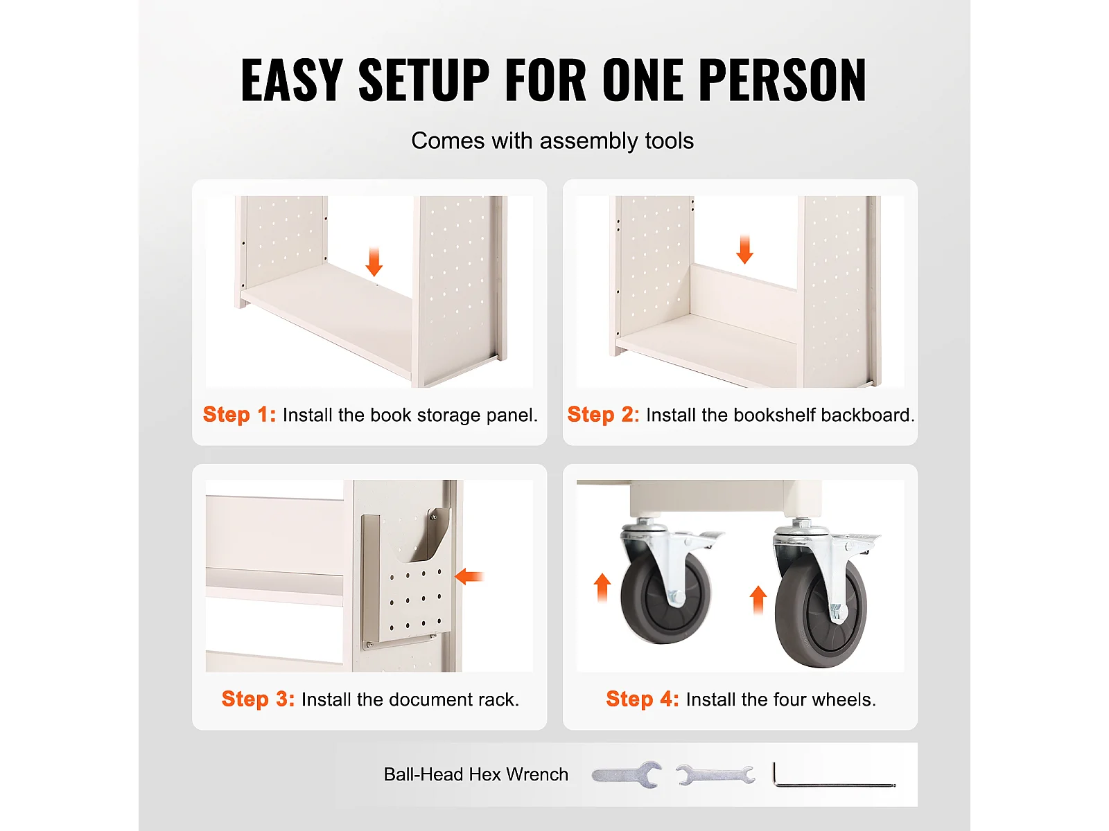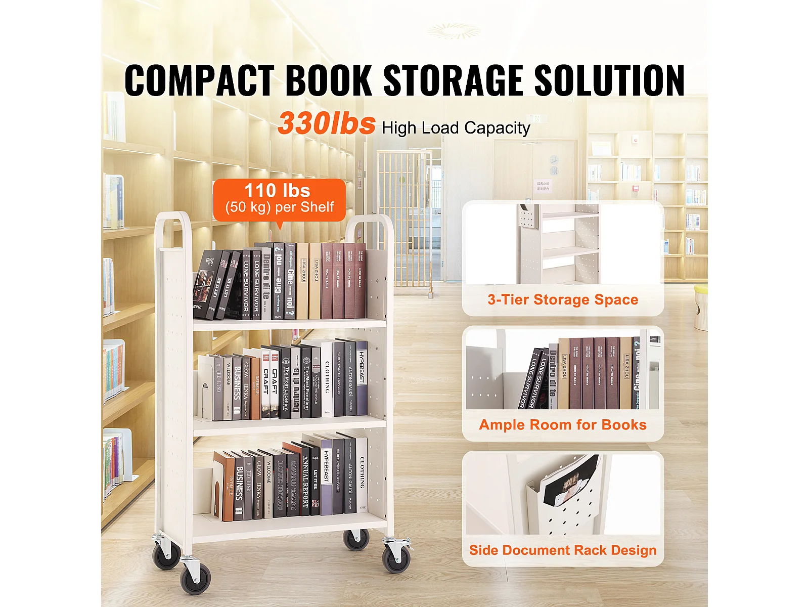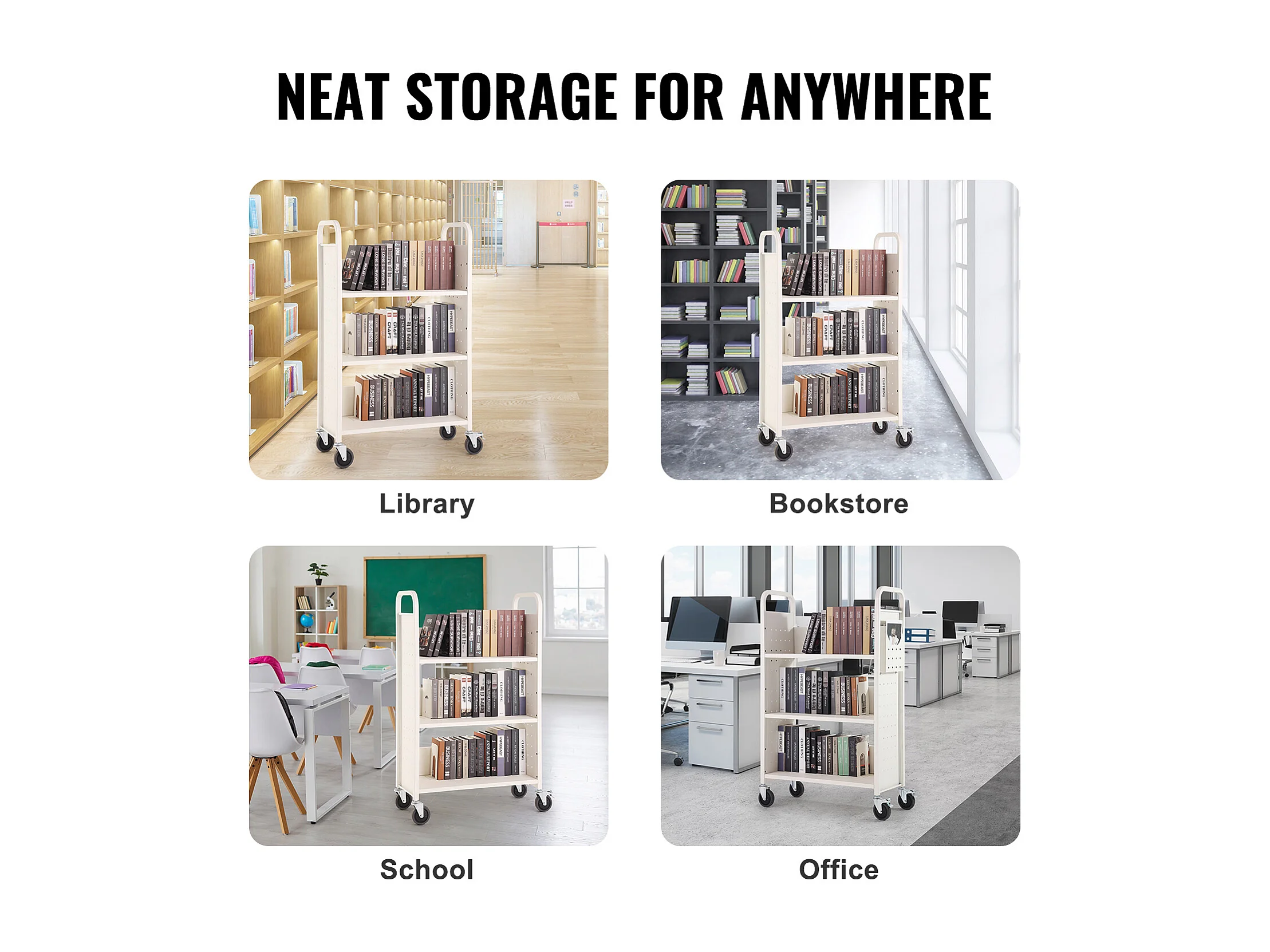 Bücherwagen SucceBuy, Tragfähigkeit von 150kg, L-Regale, Bibliothekswagen für Zuhause und Büro, Weiß