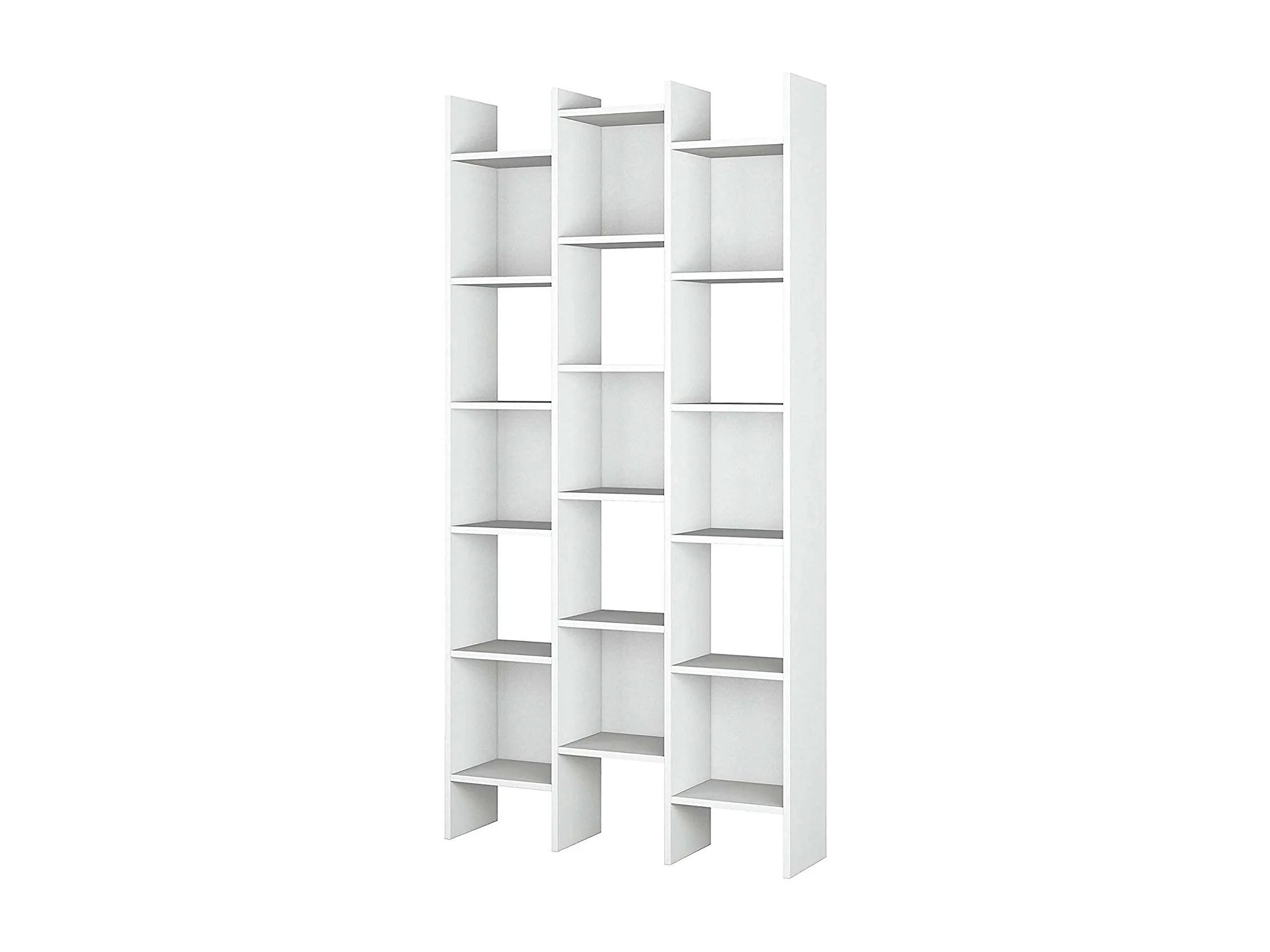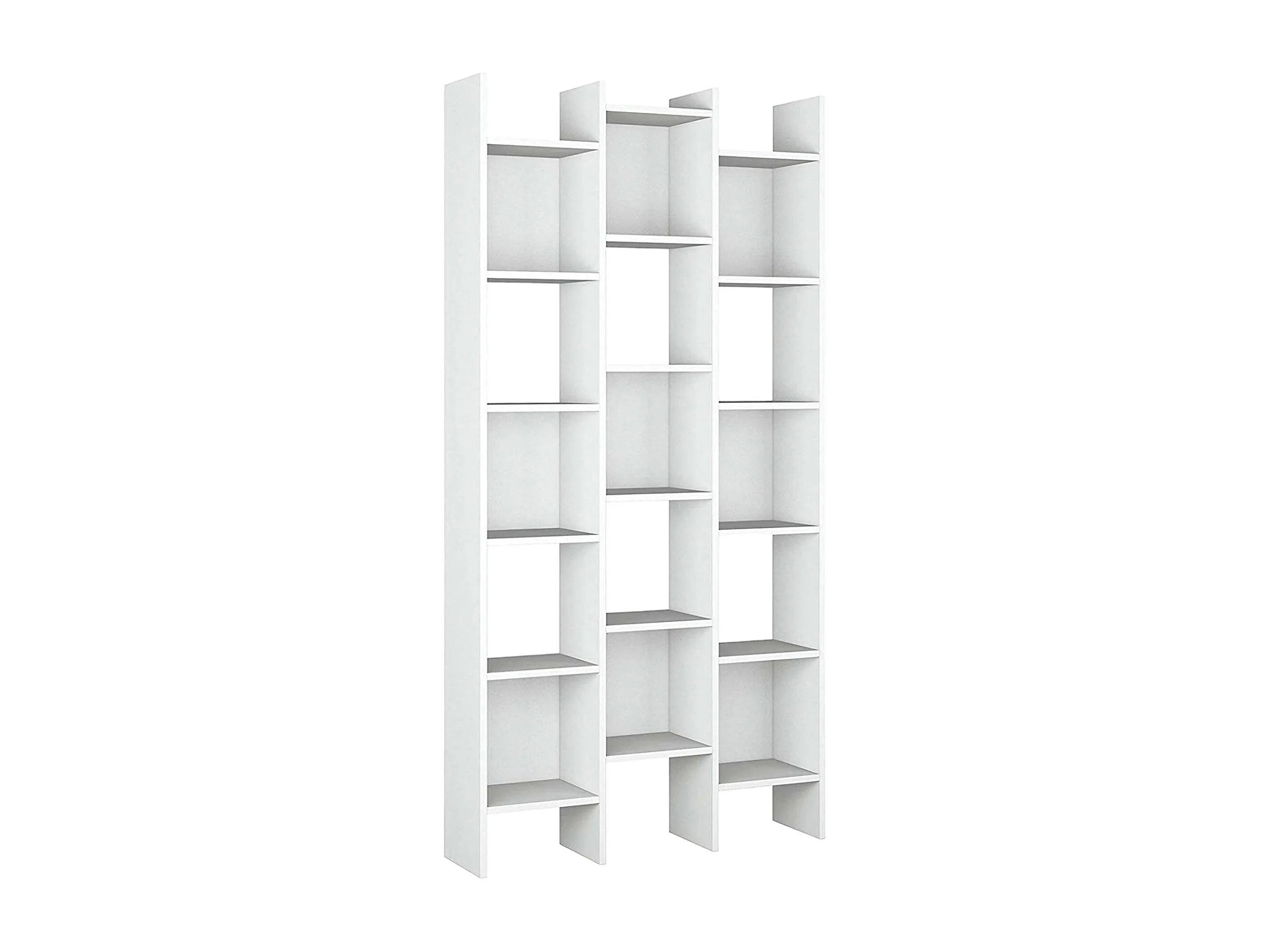 Buchhandlung Dmanis, Bücherregal mit 18 Regalen, Regal mit quadratischen Fächern, Modernes Büroregal, 96x29h192 cm, Weiß
