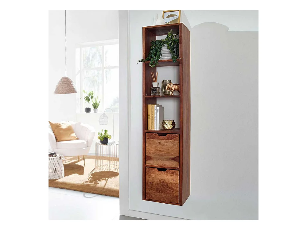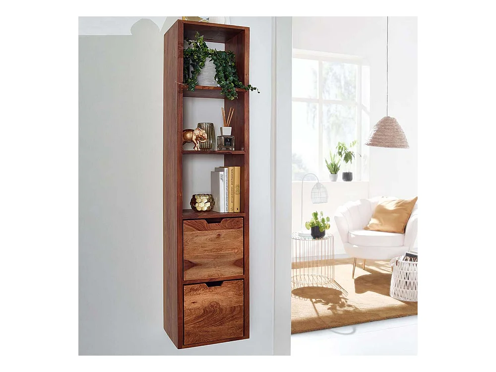 Buchregal aus Sheesham Massivholz zwei Schubladen