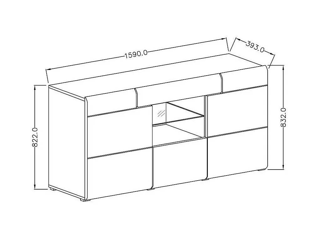 Buffet 160cm, Kollektion OHIO. Farbe anthrazitgrau und Eiche.