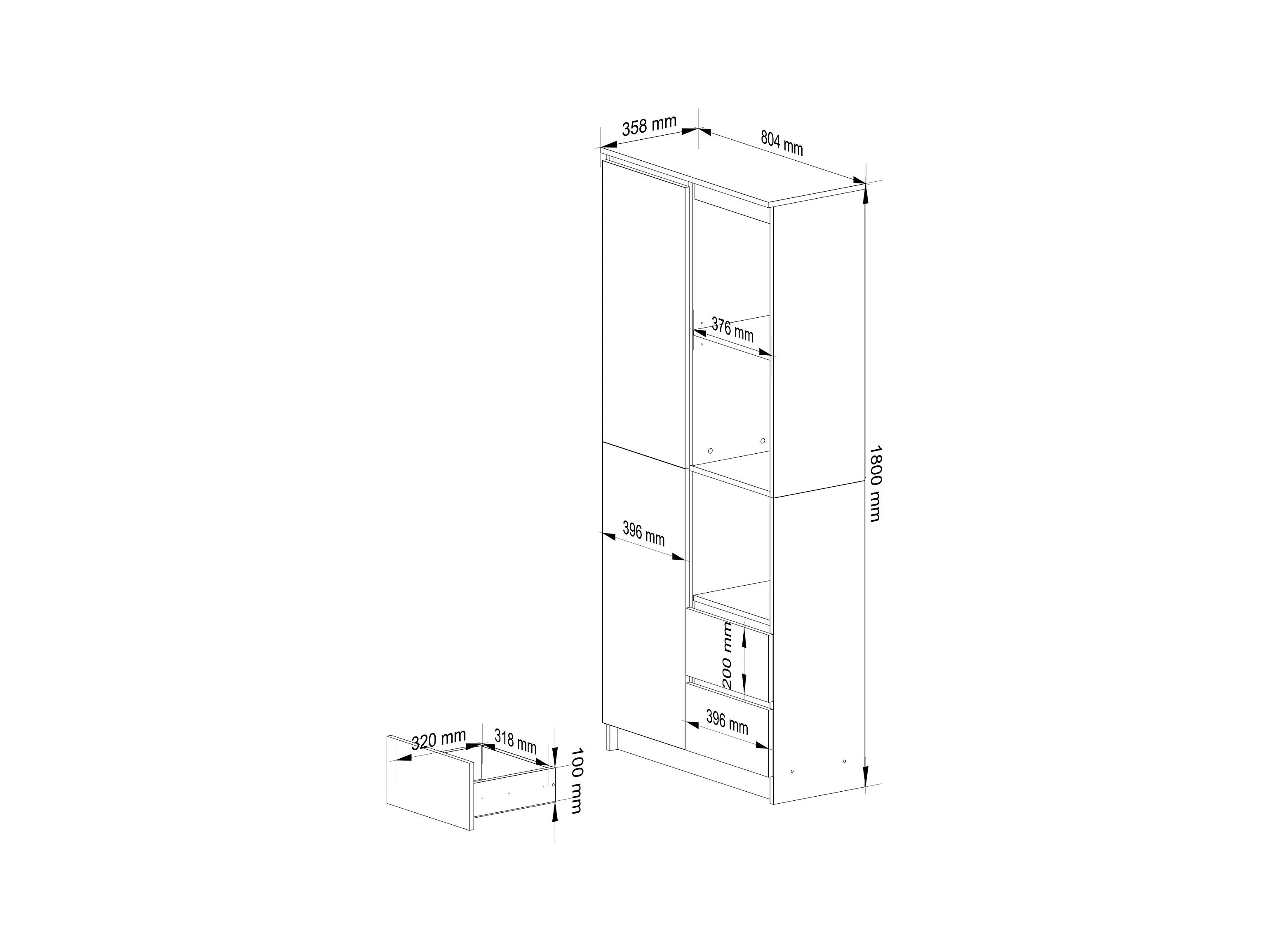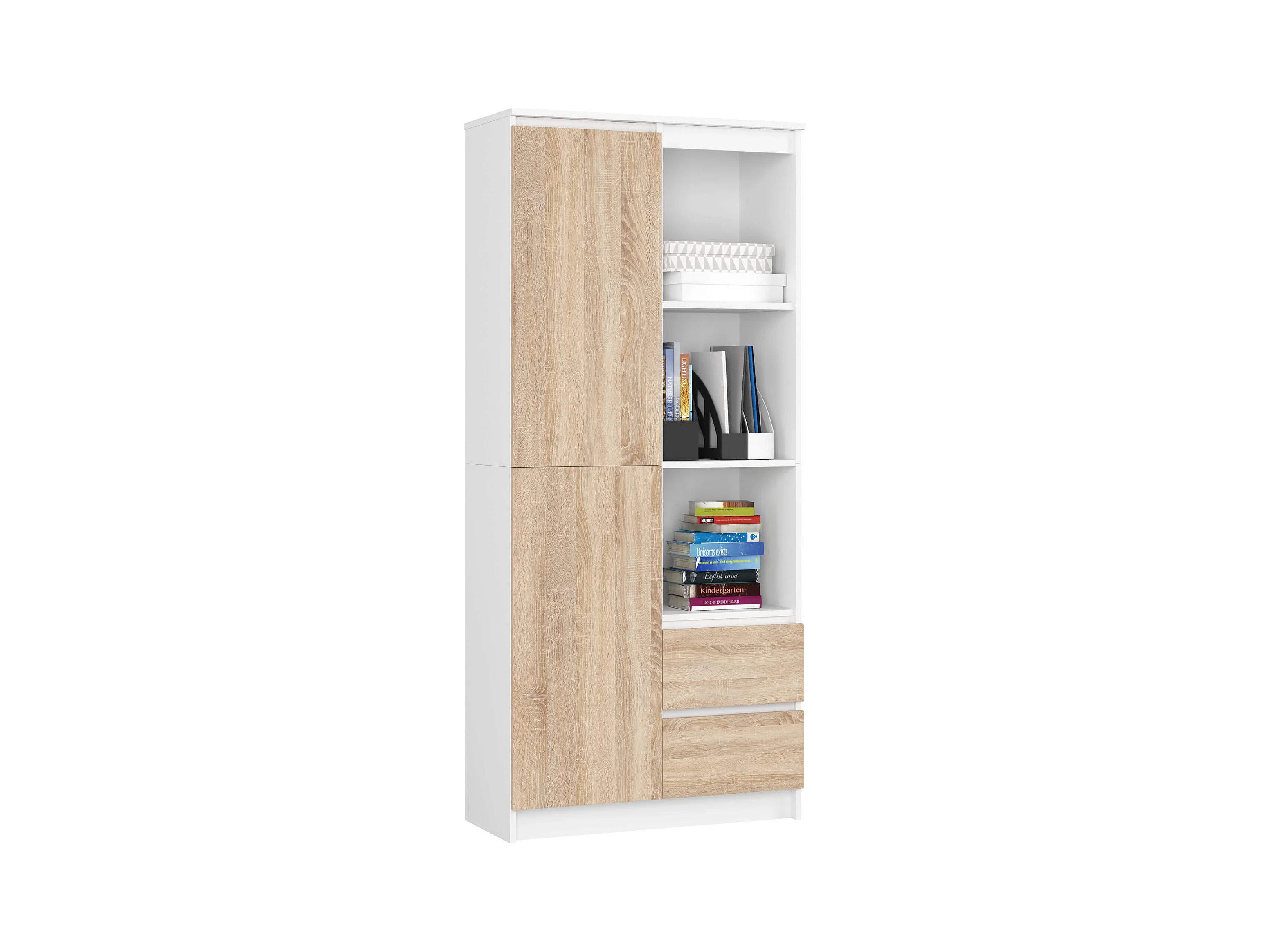 Büroregal AKORD R11 mit verschließbaren Tür Weiß 80 cm 2 Türen 2 Schubladen 7 Ebenen Front Sonoma-Eiche B80 x H180 x T35 cm