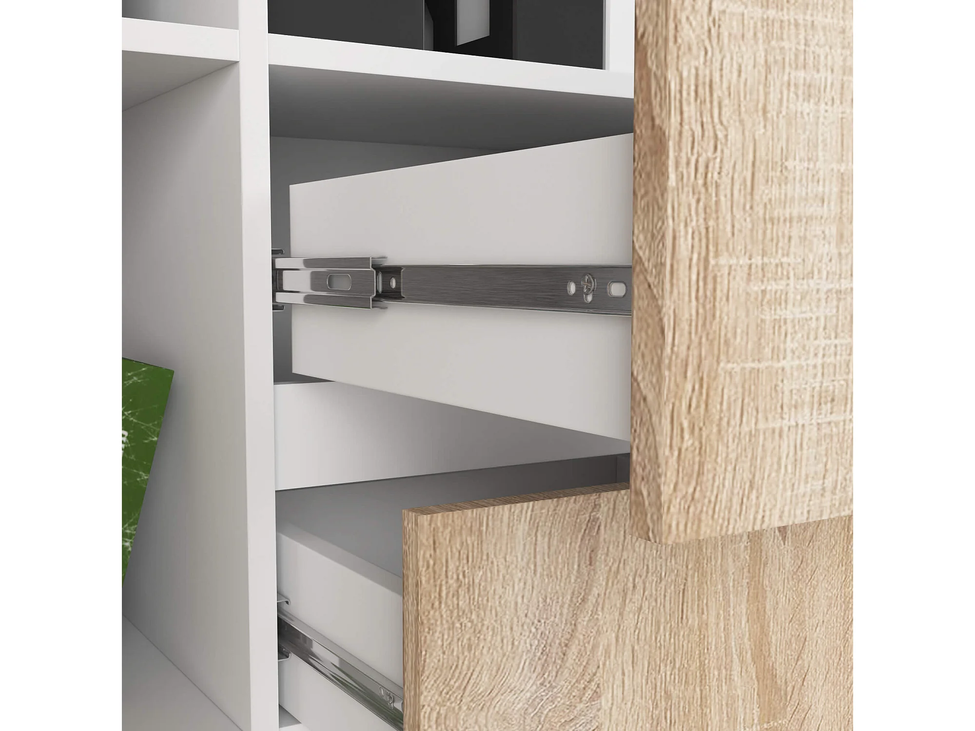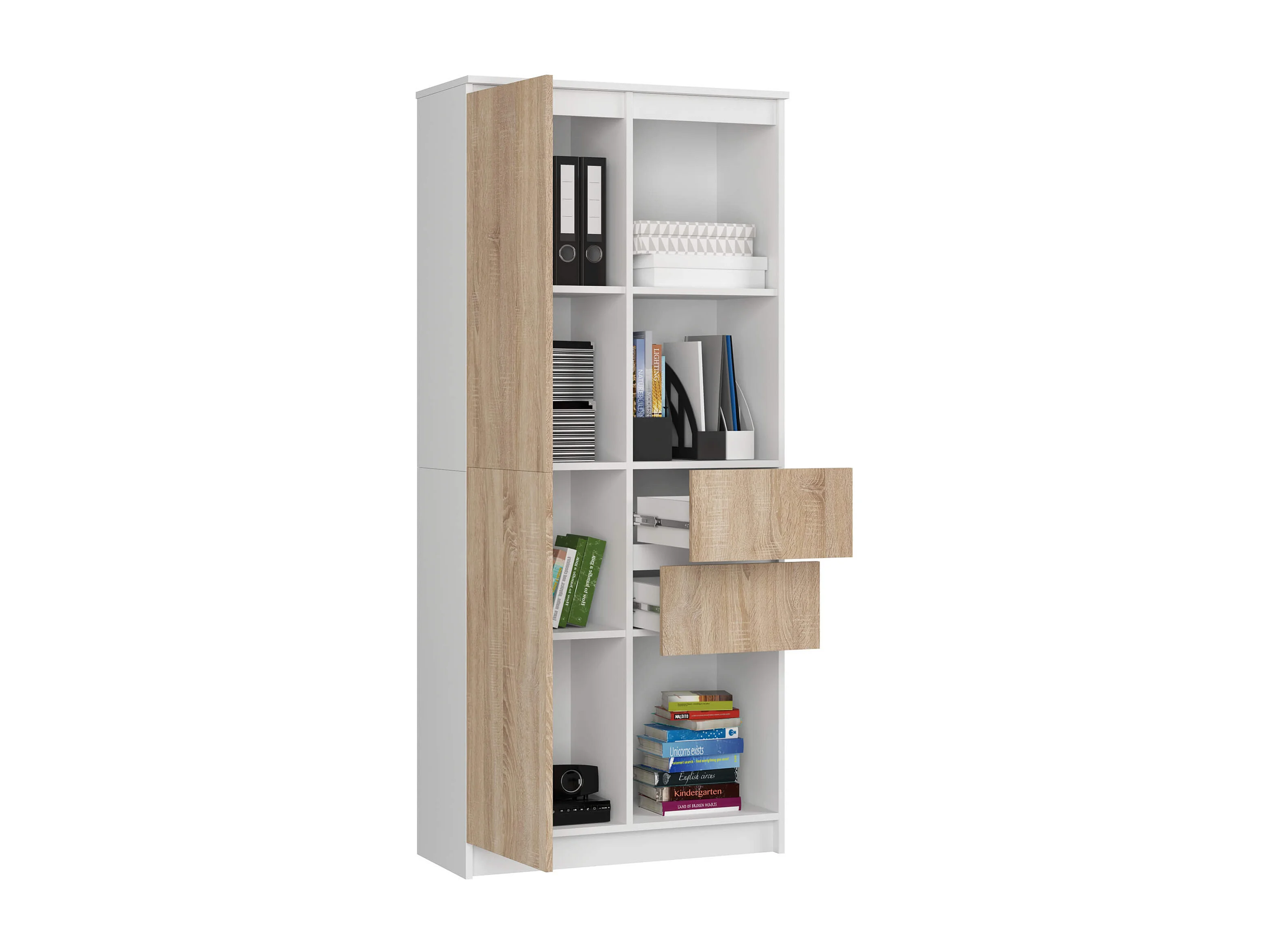 Büroregal AKORD R15 mit verschließbaren Tür Weiß 80 cm 2 Türen 2 Schubladen 7 Ebenen Front Sonoma-Eiche B80 x H180 x T35 cm