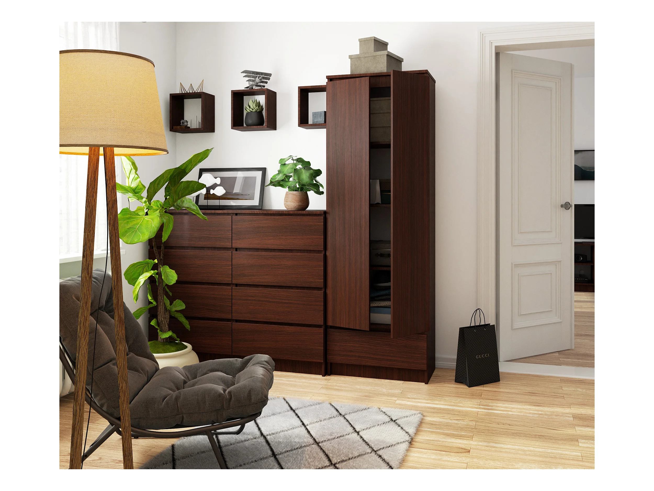 Büroregal AKORD R60 Büroschrank Aktenschrank Wenge 60 cm 2 Türen Schublade 4 Ebenen B60 x H180 x T35 cm
