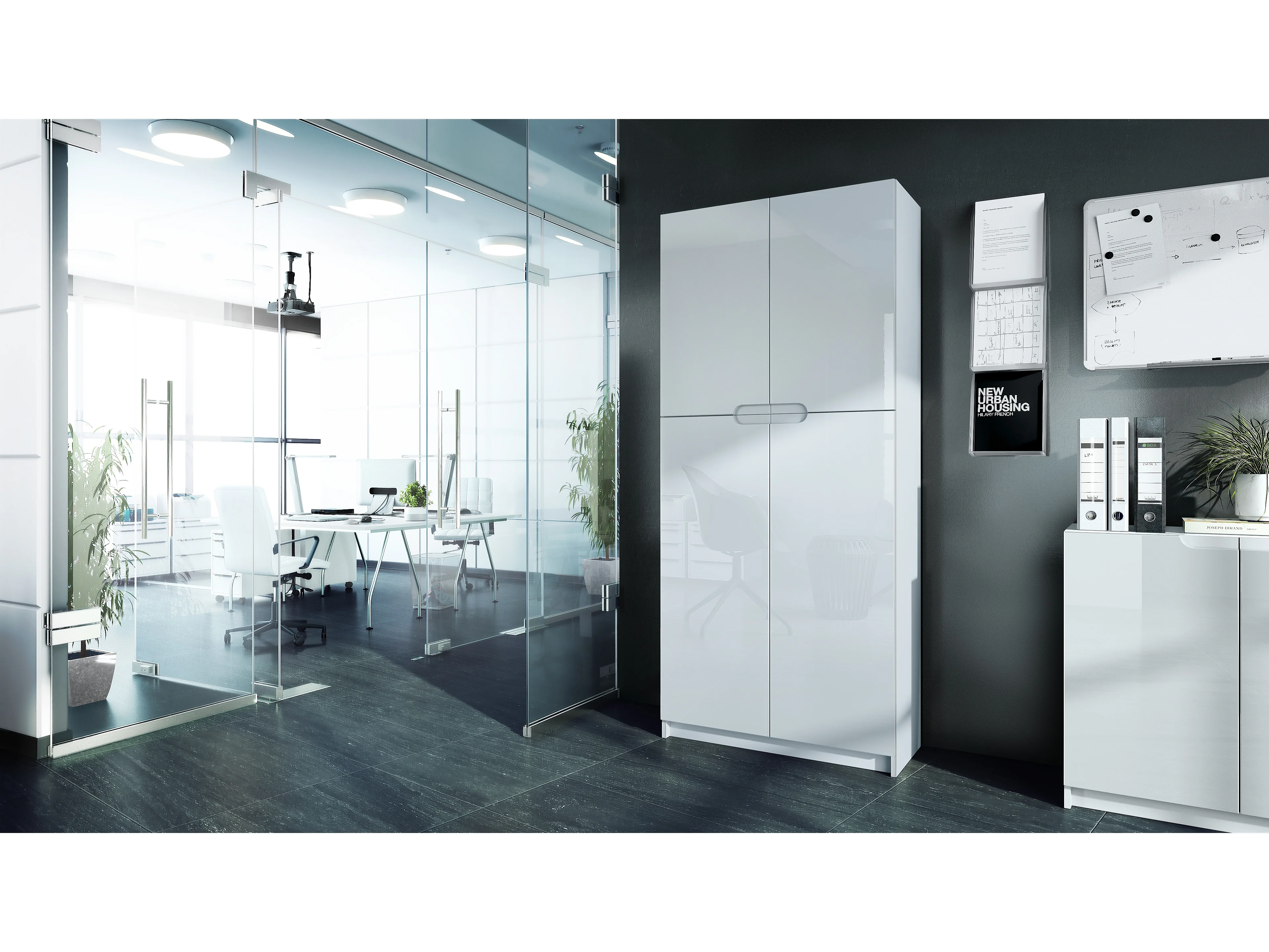 BÜROSCHRANK Logan Fronten in Weiß Hochglanz