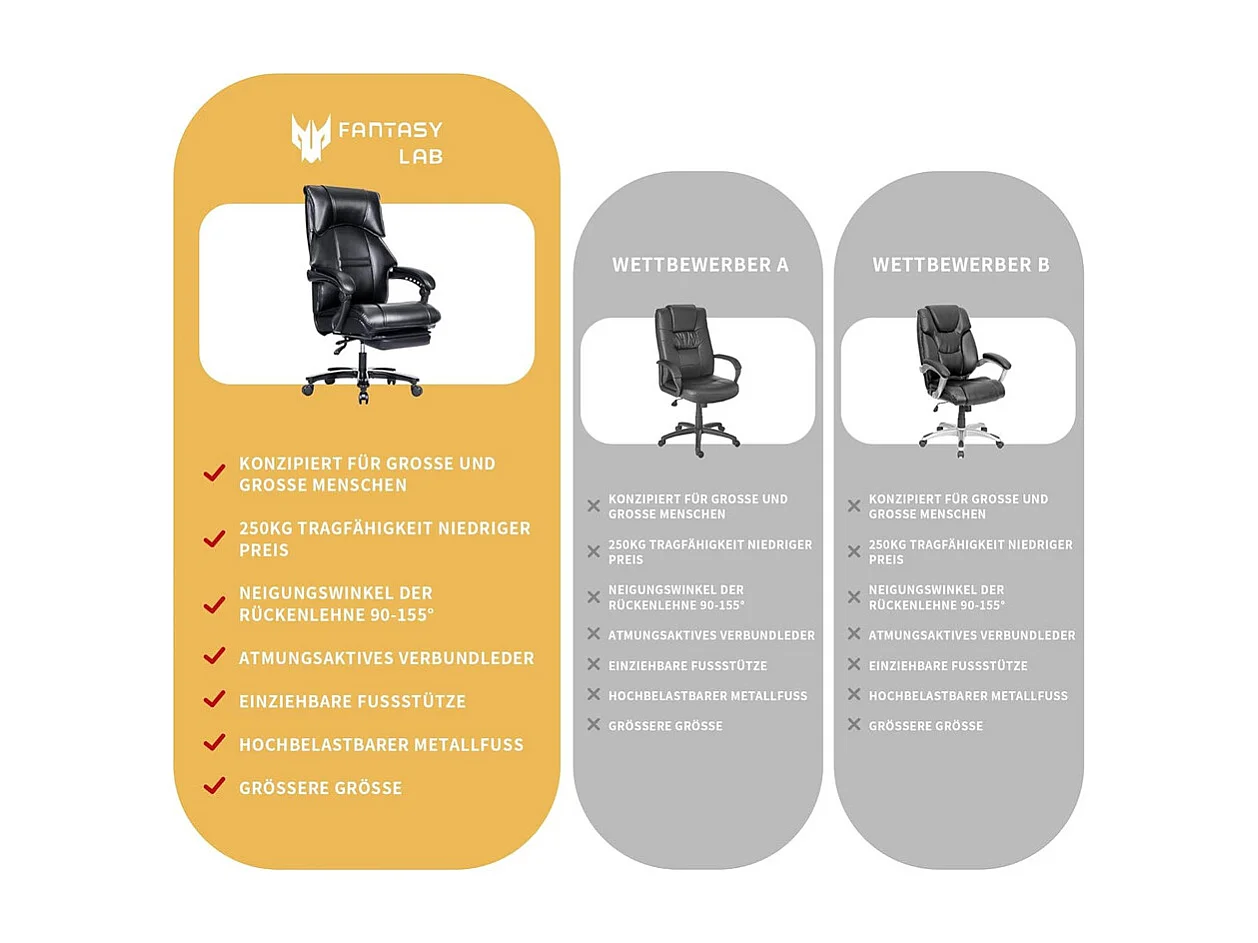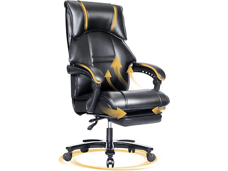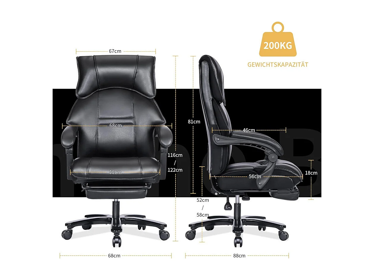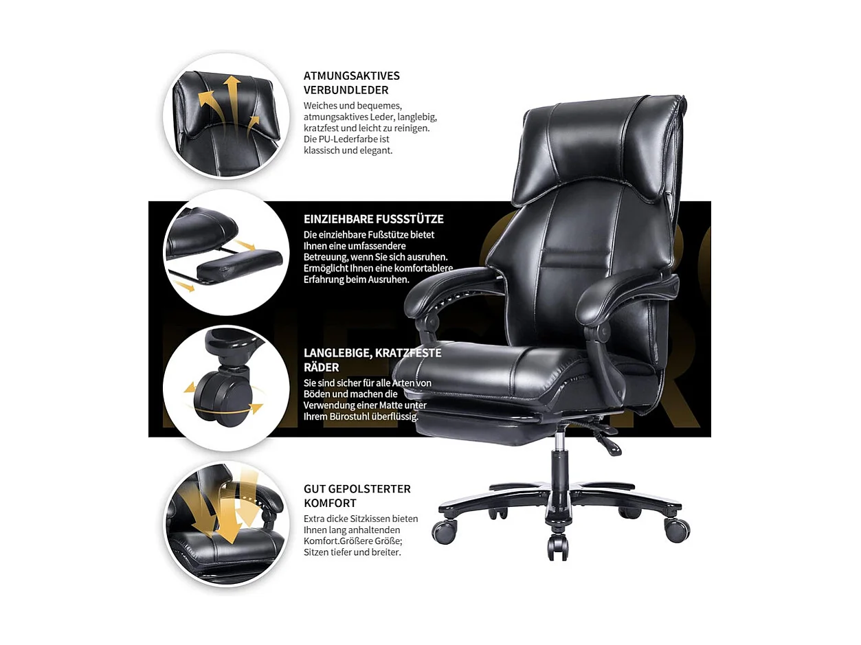 Bürostuhl aus PU-Leder mit Fußstütze, neigbarer drehbarer Sitz, Metallrahmen, Belastung 200 kg