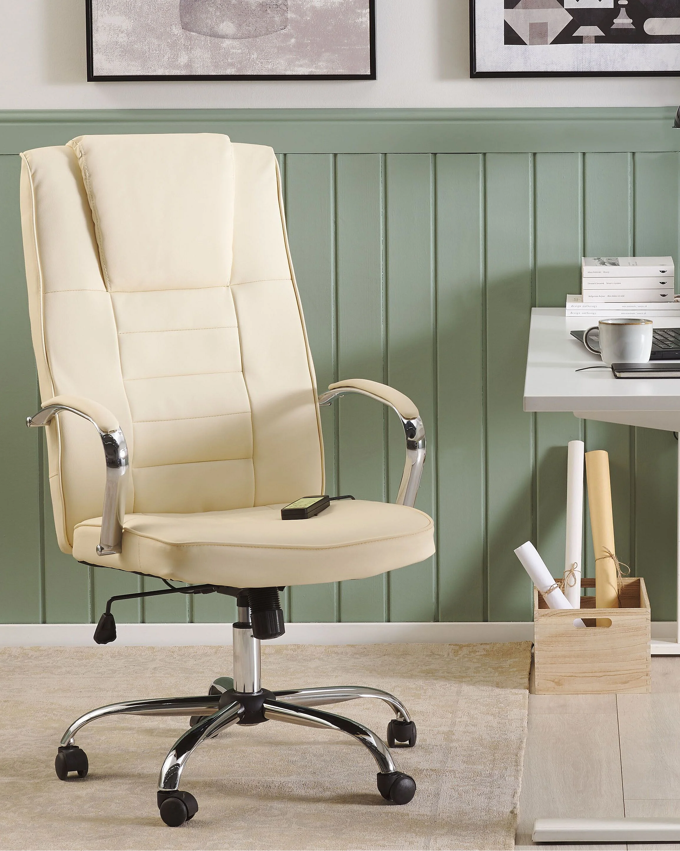 Bequemer Chefsessel Massagefunktion Heizfunktion Kunstleder beige Grandeur